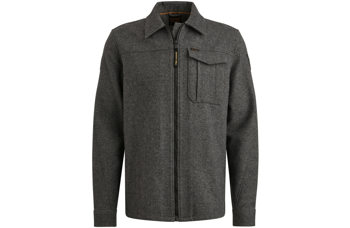 PME Legend overhemd PSI2510218. Dit rechtvallend model is voorzien van een kraag en heeft lange mouwen. Deze grijze wollen overhemd sluit door middel van een rits en is afgewerkt met een borstzak. Dit model is bewerkt met het logo op de mouw.