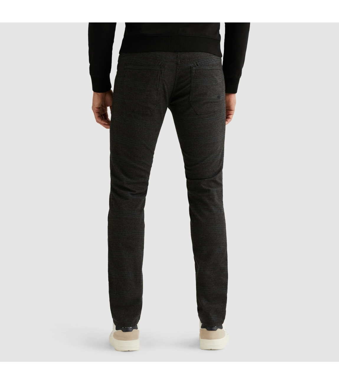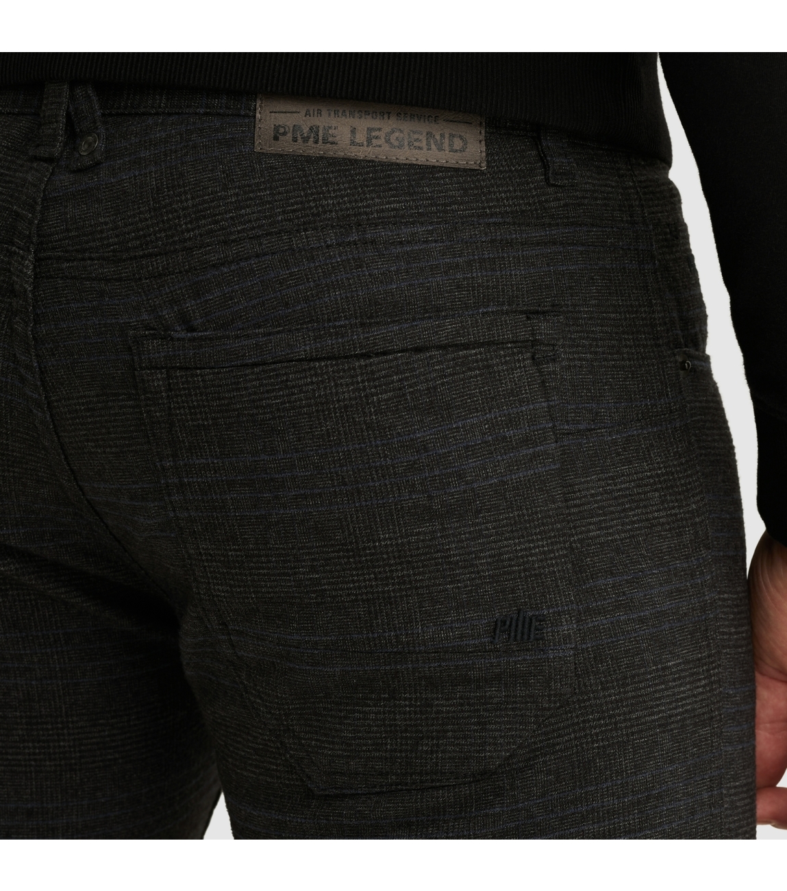 PME Legend broek PTR2510646-5109. Dit regular fit model sluit door middel van een knoop en rits afgewerkt met ceintuurlusse. Deze donkerblauwe broek van PME Legend heeft 5 zakken en is all-over bewerkt in een ruitpatroon.