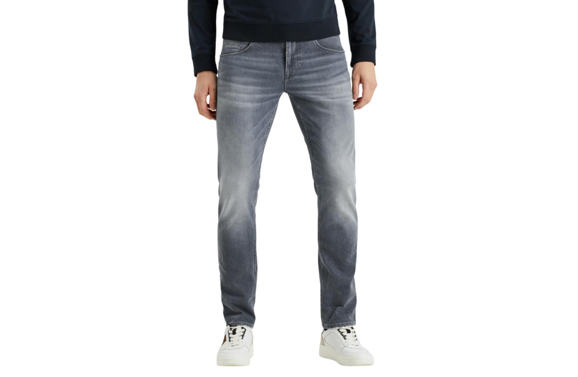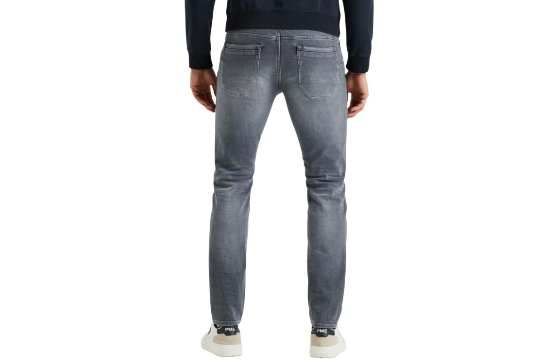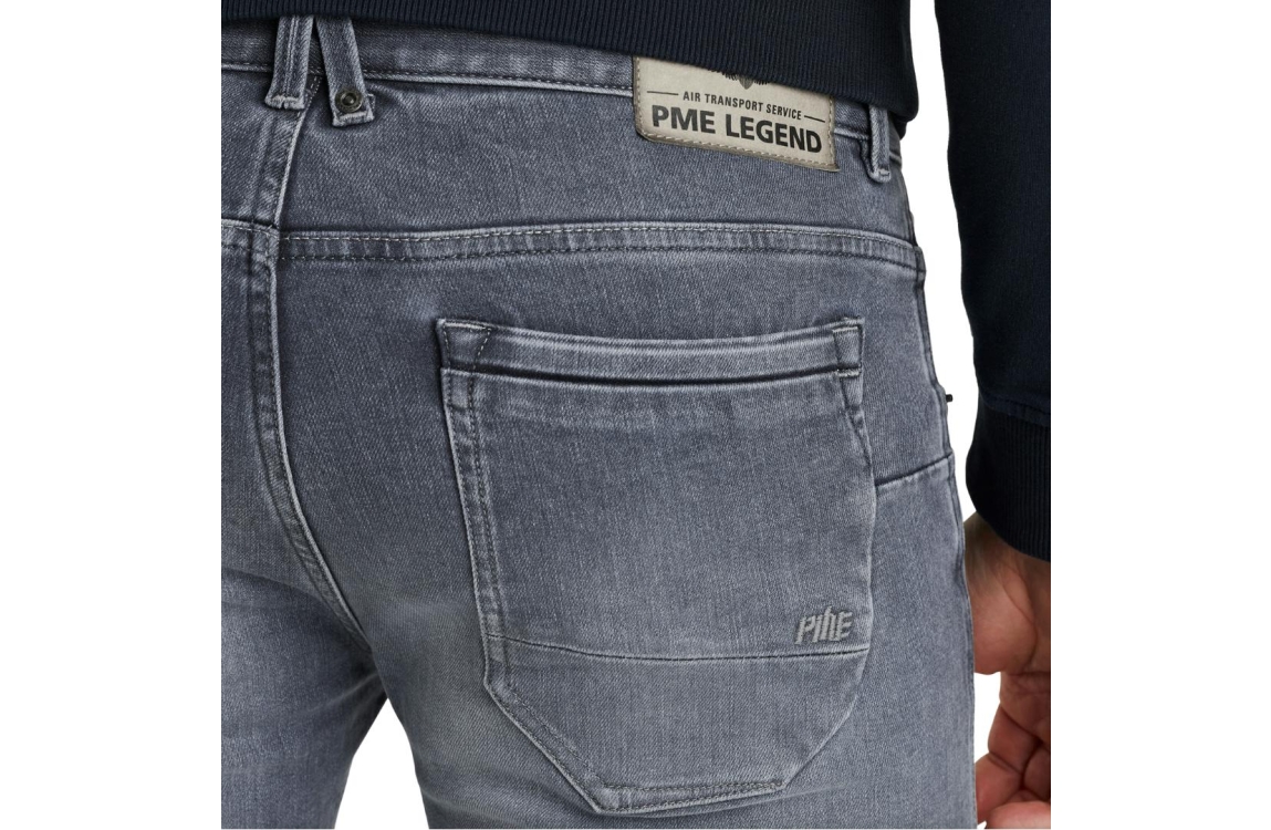 PME Legend Nightflight jeans PTR120-IGB. Dit regular fit model sluit door middel van een rits en een knoop afgewerkt met ceintuurlussen. Deze grijze jeans van PME Legend is voorzien van twee steekzakken met een muntzak aan de voorzijde en twee steekzakken aan de achterzijde.