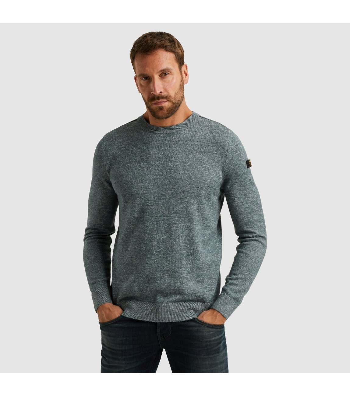 PME Legend pullover PKW2508335. Dit regular fit model heeft een ronde hals en lange mouwen. Deze blauw gebreide pullover van PME Legend is bewerkt met het merklogo op de linkermouw en is afgewerkt met rib boorden.