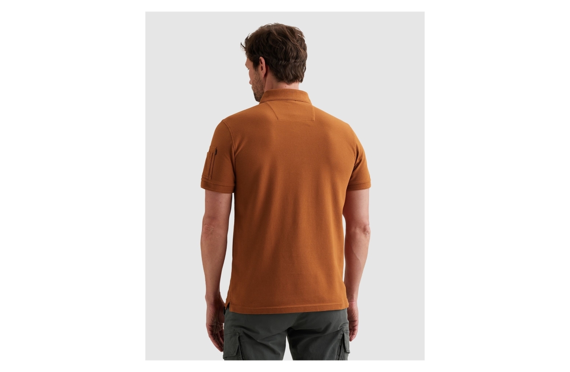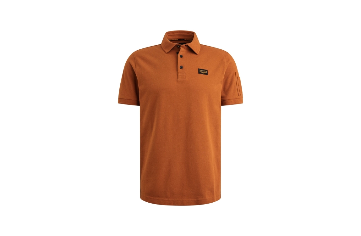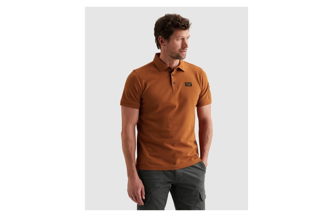PME Legend polo PPSS2602899. Dit regular fit model heeft een kraag met knopen en korte mouwen. Deze roestbruine PME Legend polo is afgewerkt met een pocket detail op de schouder en beschikt over een logo op de borst.