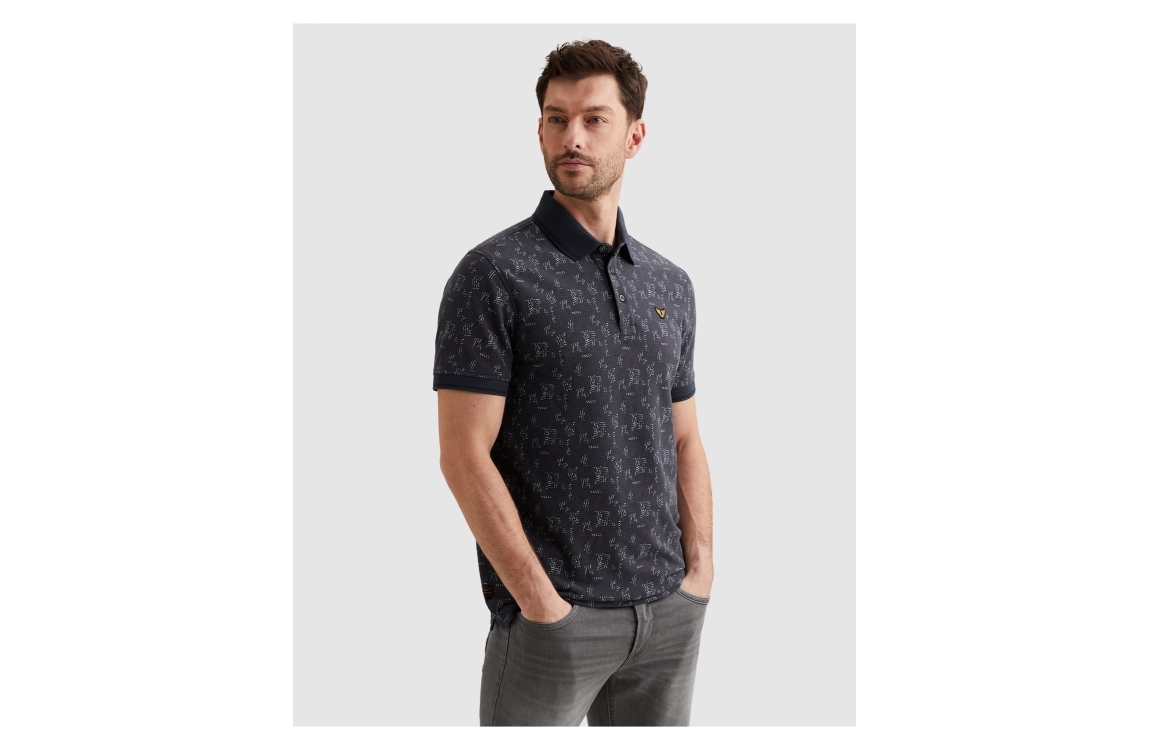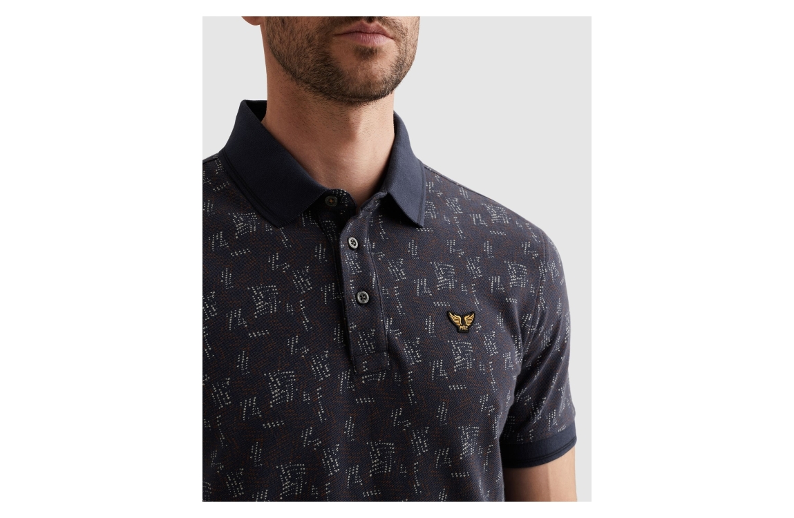 PME Legend polo fine pique PPSS2602852. Dit rechtvallend model heeft een kraag en korte mouwen. Deze donkerblauwe polo van PME Legend heeft een merkembleem borst. Dit model is doormiddel van knopen te sluiten en is bewerkt met een all-over print.
