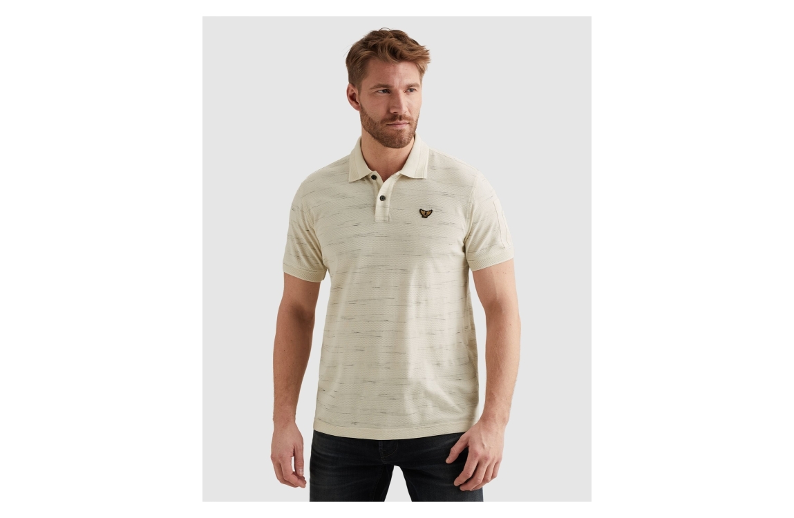 PME Legend polo PPSS2603885. Dit regular fit model is voorzien van een kraag en heeft korte mouwen. Deze lichtgele polo van PME Legend sluit aan de voorzijde door middel van knopen. Dit model is bewerkt met een motief.