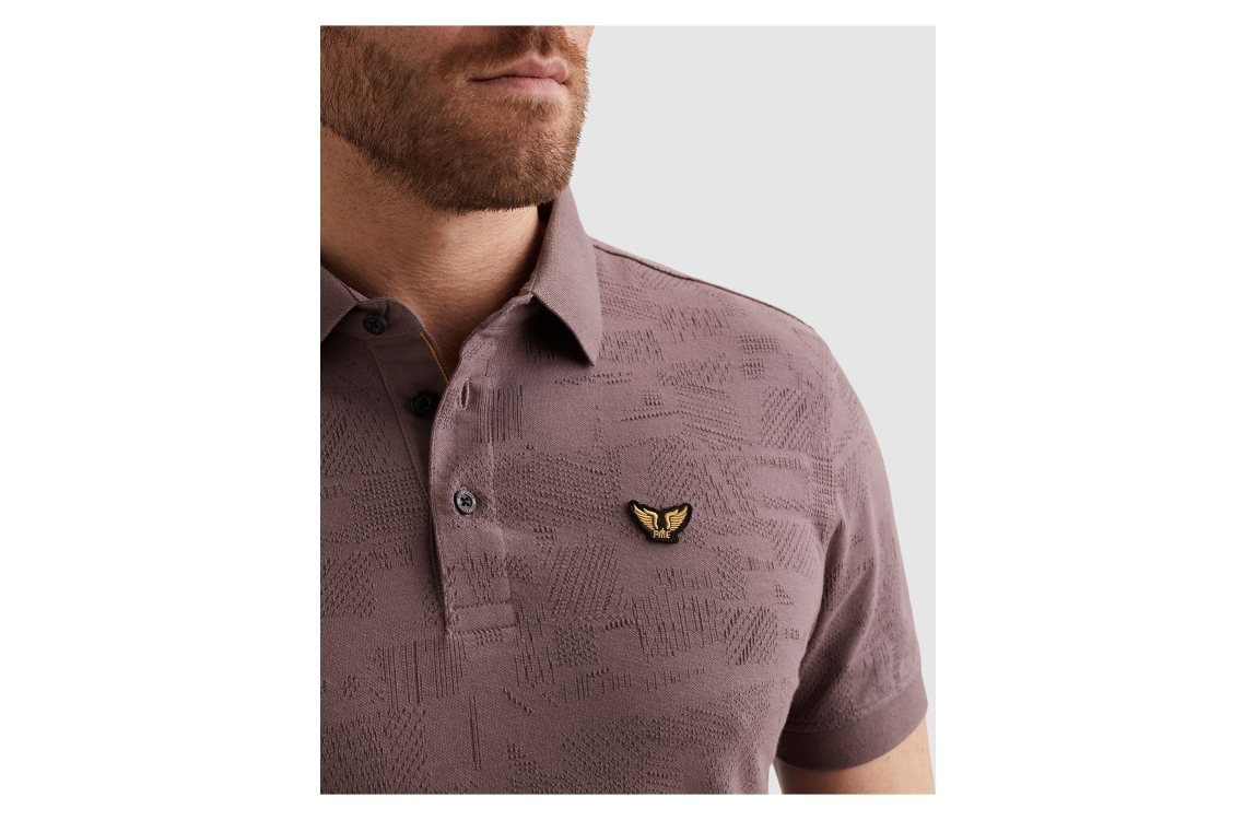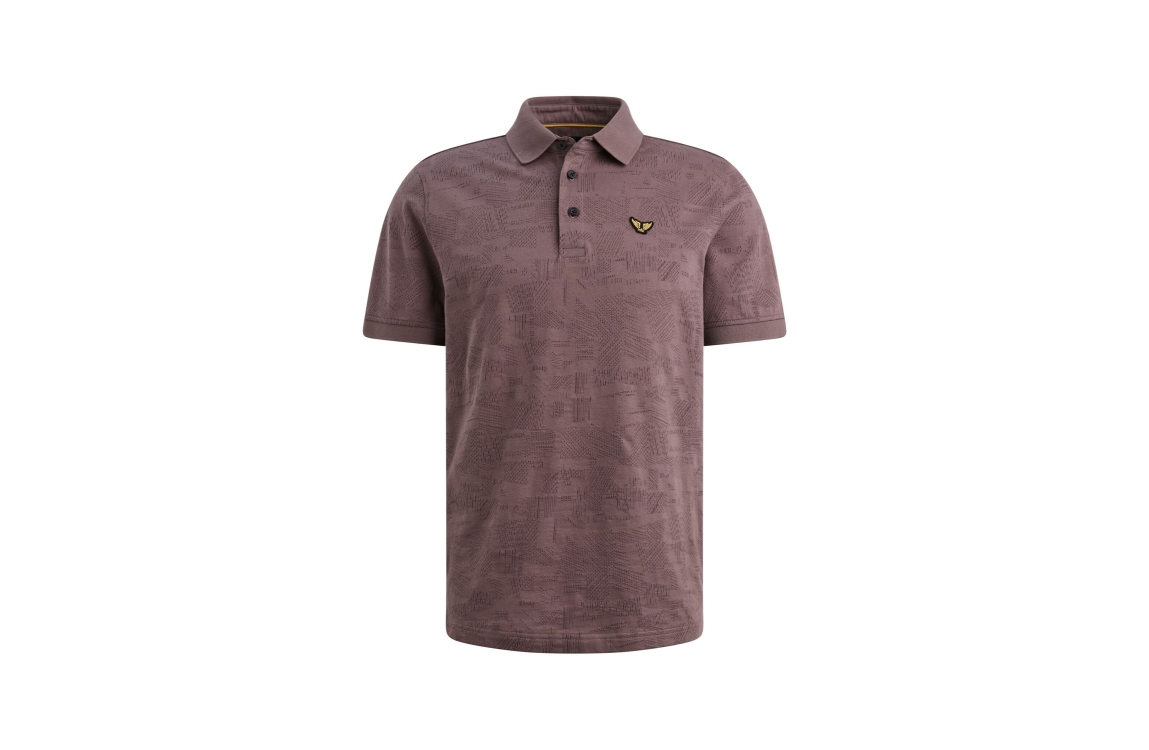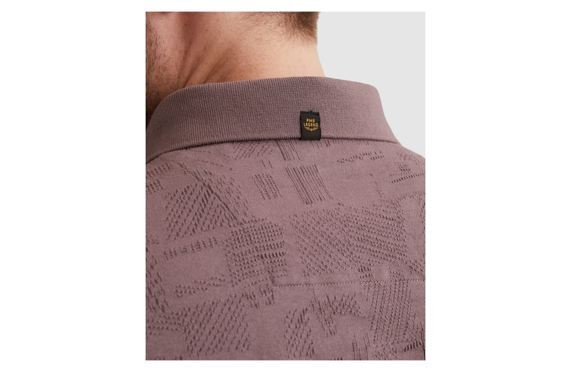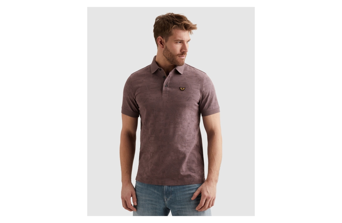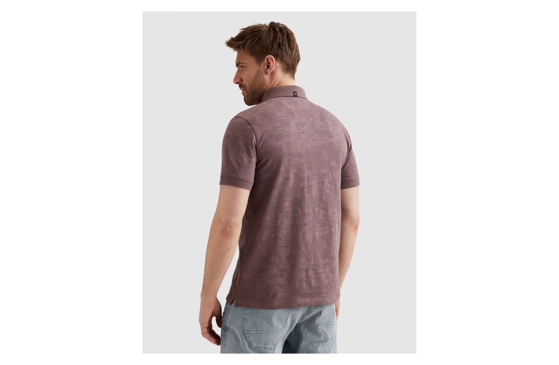 PME Legend polo PPSS2603883. Dit regular fit model is voorzien van een kraag en heeft korte mouwen. Deze donkerpaarse polo van PME Legend sluit aan de voorzijde door middel van knopen. Dit model is bewerkt met een motief.
