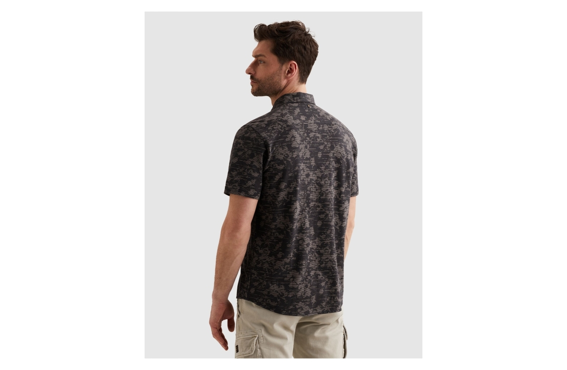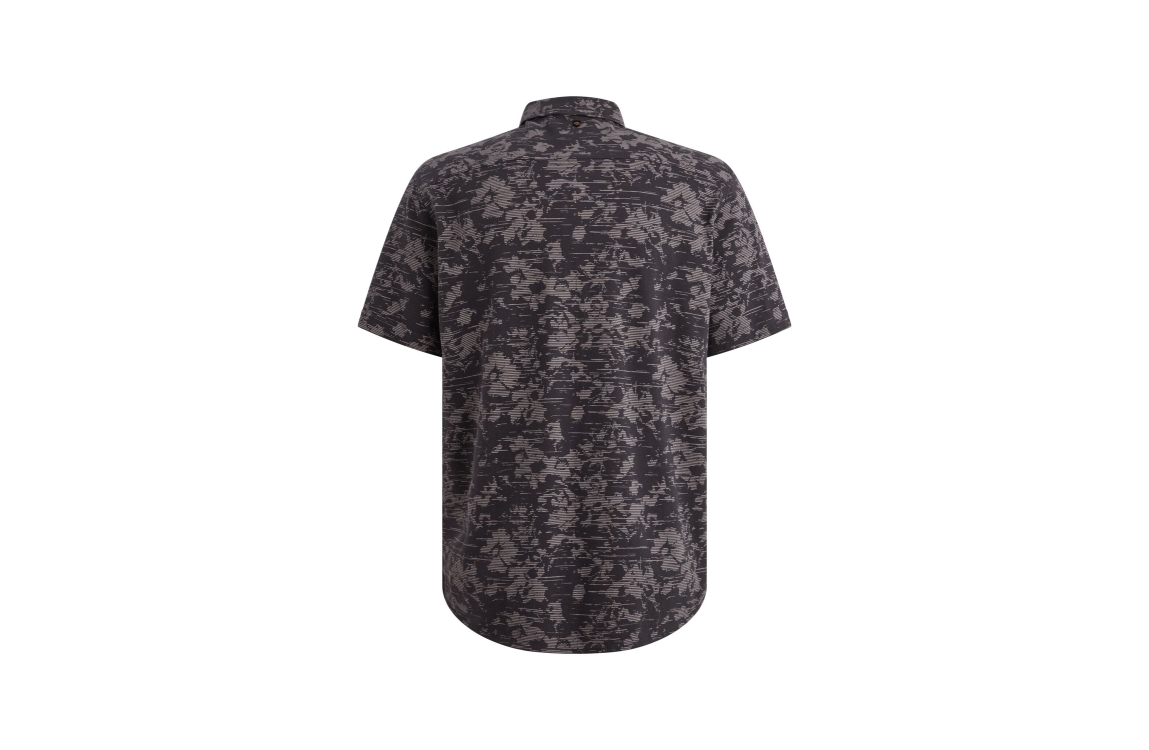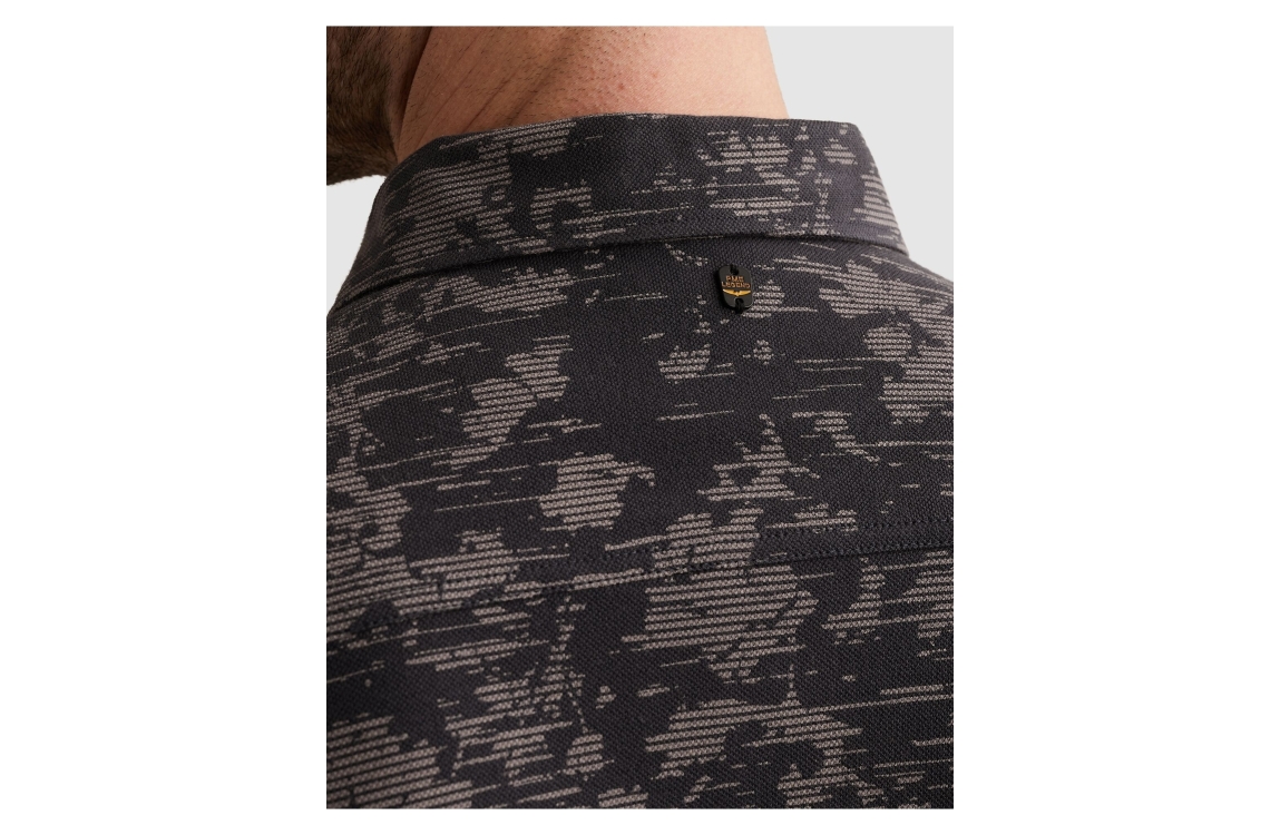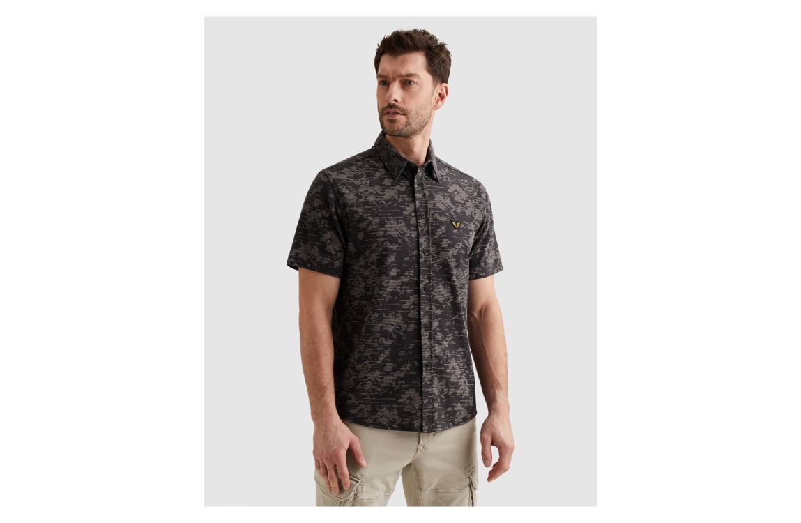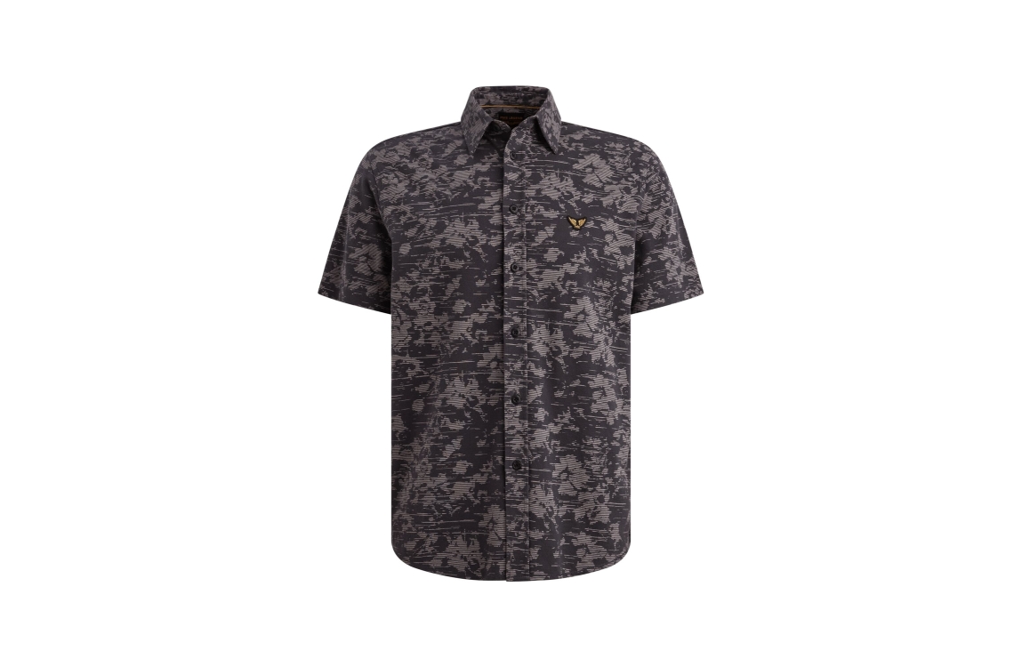 PME Legend overhemd PSIS2603254 5278. Dit rechtvallende model heeft een kraag en korte mouwen. Deze donkerblauwe overhemd van PME Legend sluit aan de voorzijde door middel van knopen en is all-over bewerkt met een grafische print. Het model is op de linkerborst gedetailleerd met het merkembleem.