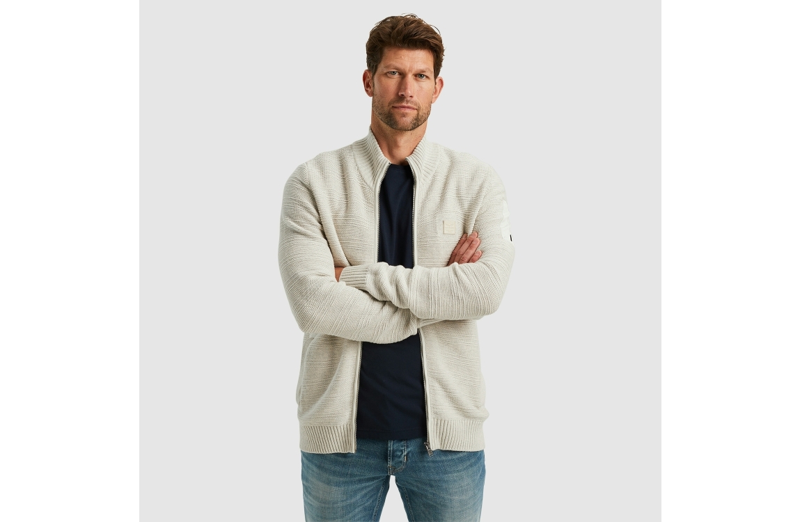 PME Legend Zip jacket cotton structure knit 910 Bone white melee