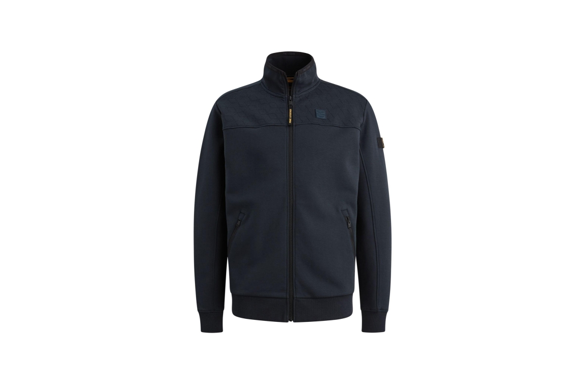 PME Legend vest PSW2602476 5281. Dit rechtvallende model heeft een opstaande kraag en lange mouwen. Deze donkerblauwe vest van PME Legend sluit aan de voorzijde door middel van een rits en is voorzien van het merkembleem op de linkerborst. Het model is voorzien van twee ritszakken en is uitgevoerd in een comfortabele pasvorm.