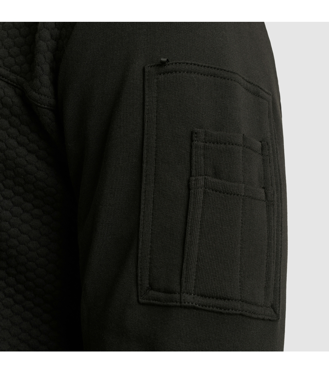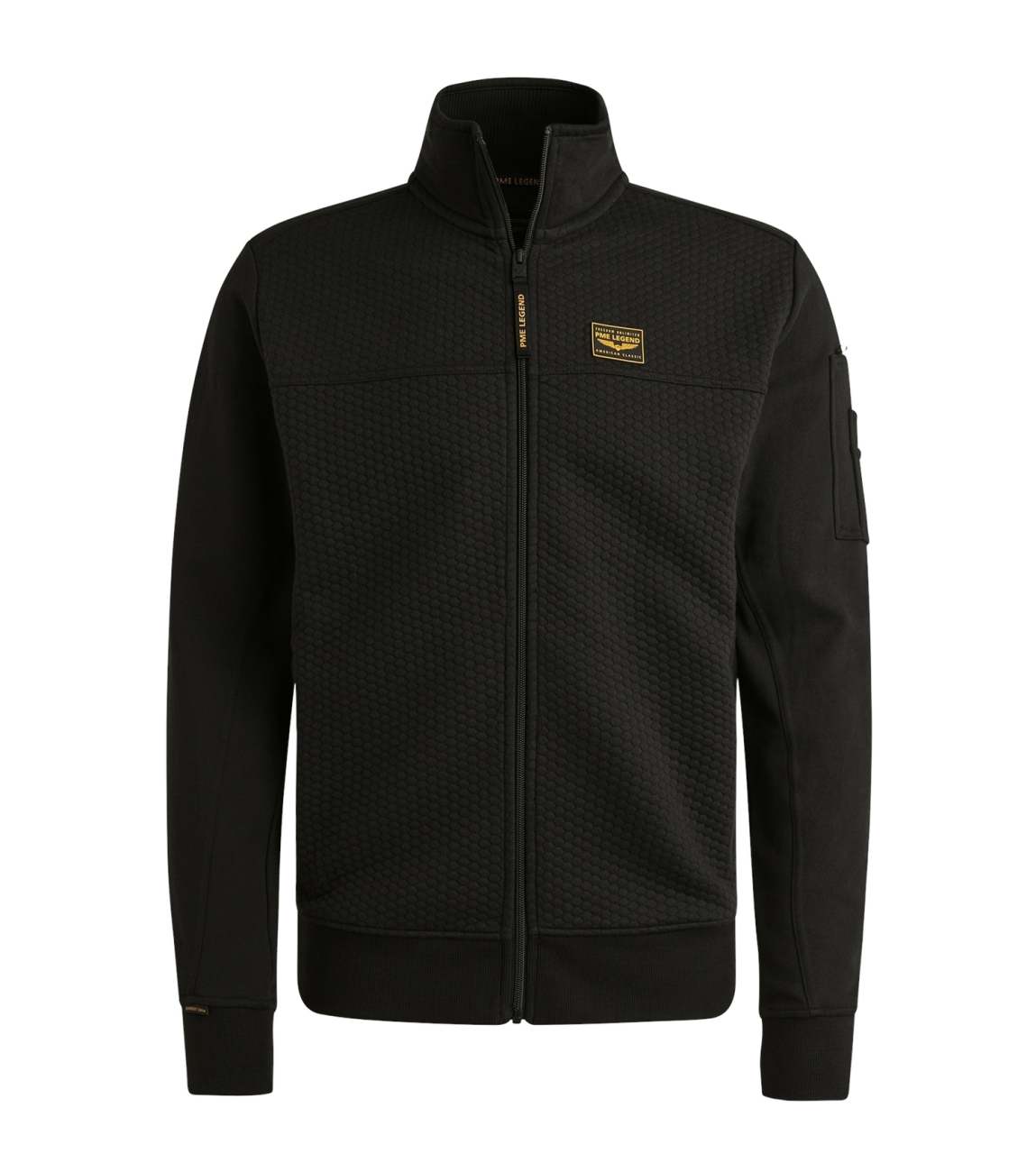 PME Legend vest PSW2509436. Dit regular fit model heeft lange mouwen en is doormiddel van een rits te sluiten. Dit zwarte vest van PME Legend is afgewerkt met een geblokt patroon een logo op de borst en een pennenzakje op de mouw.