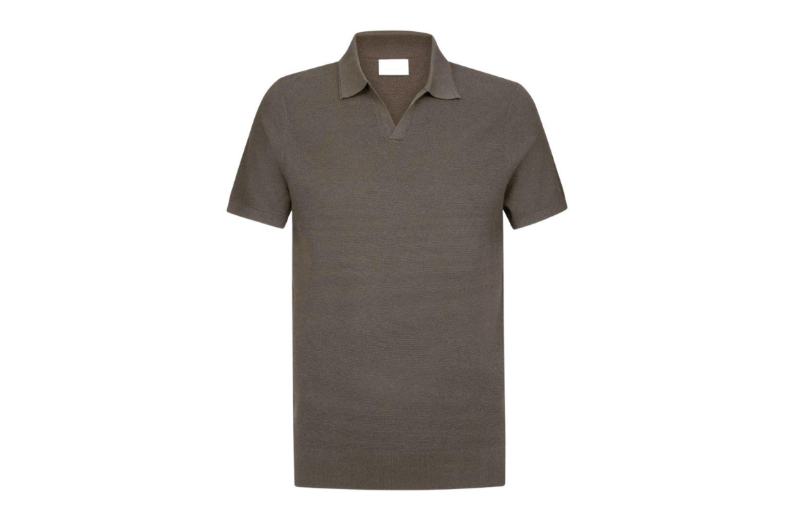 Profuomo polo open collar PPXD10009E. Dit rechtvallend model is voorzien van een kraag met v-inkeping en heeft korte mouwen. Deze bruine polo is uitgevoerd in een structuur.