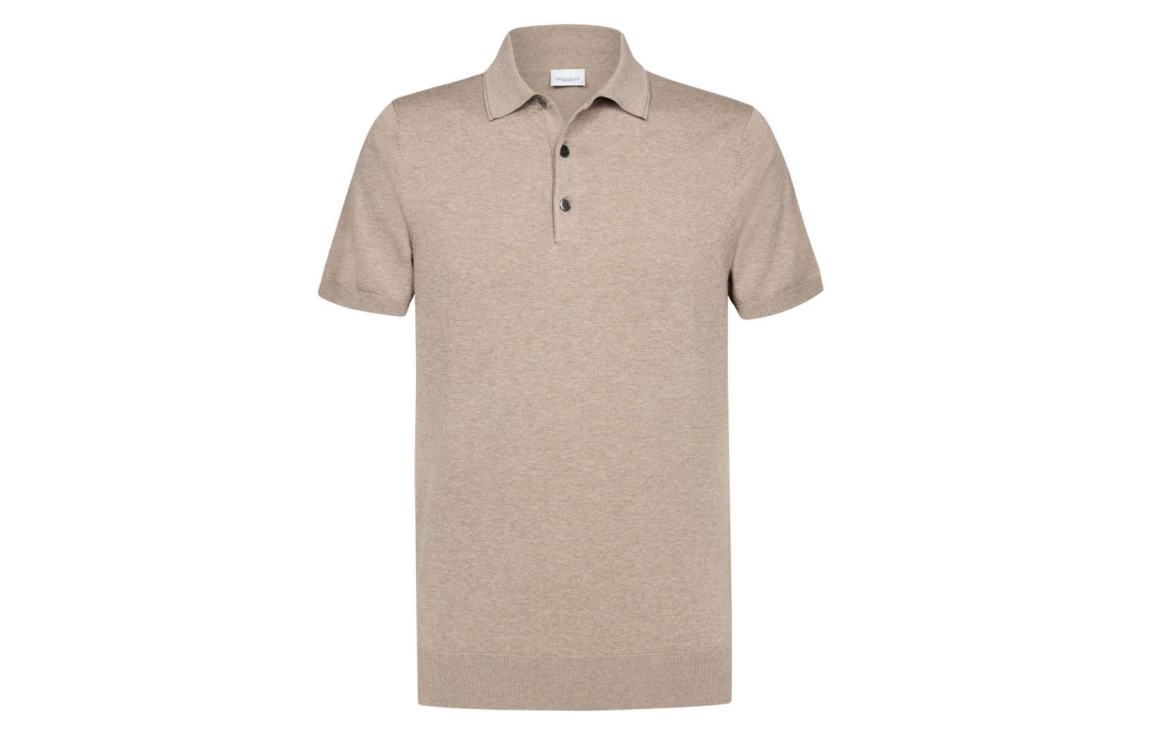 Profuomo polo PP2D00001C. Dit rechtvallend model is voorzien van een kraag en heeft korte mouwen. Deze beige polo sluit door middel van knopen.