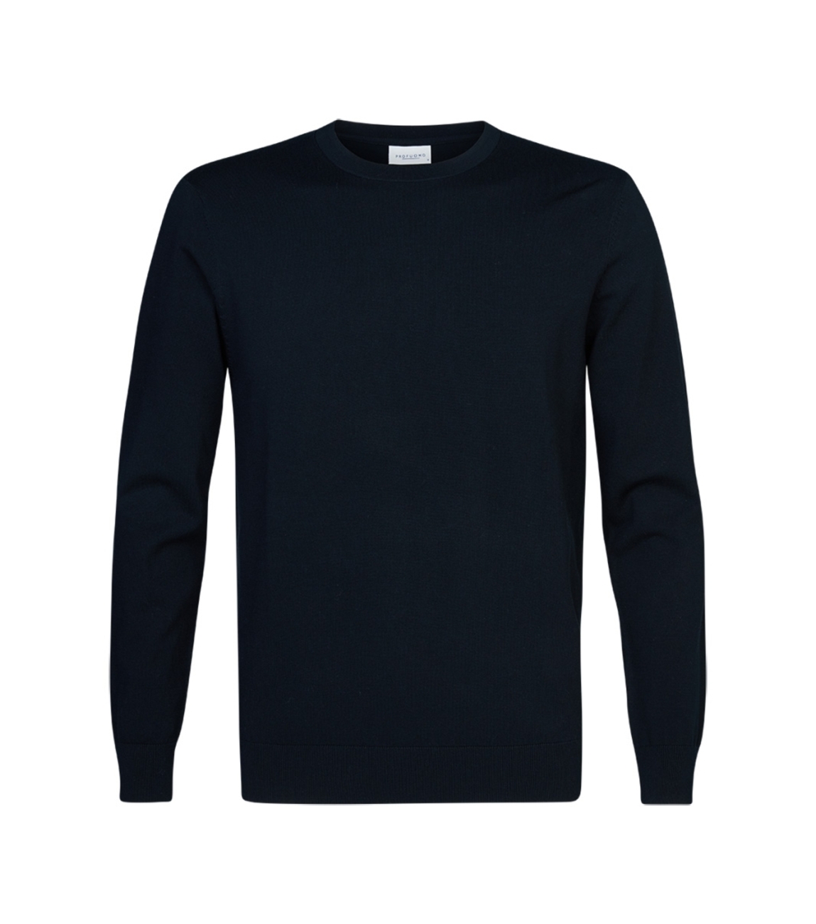 Profuomo pullover PP2J00008A. Dit rechtvallend model is voorzien van een brede ronde hals en heeft lange mouwen. Deze blauwe pullover van Profuomo heeft elastische boorden.