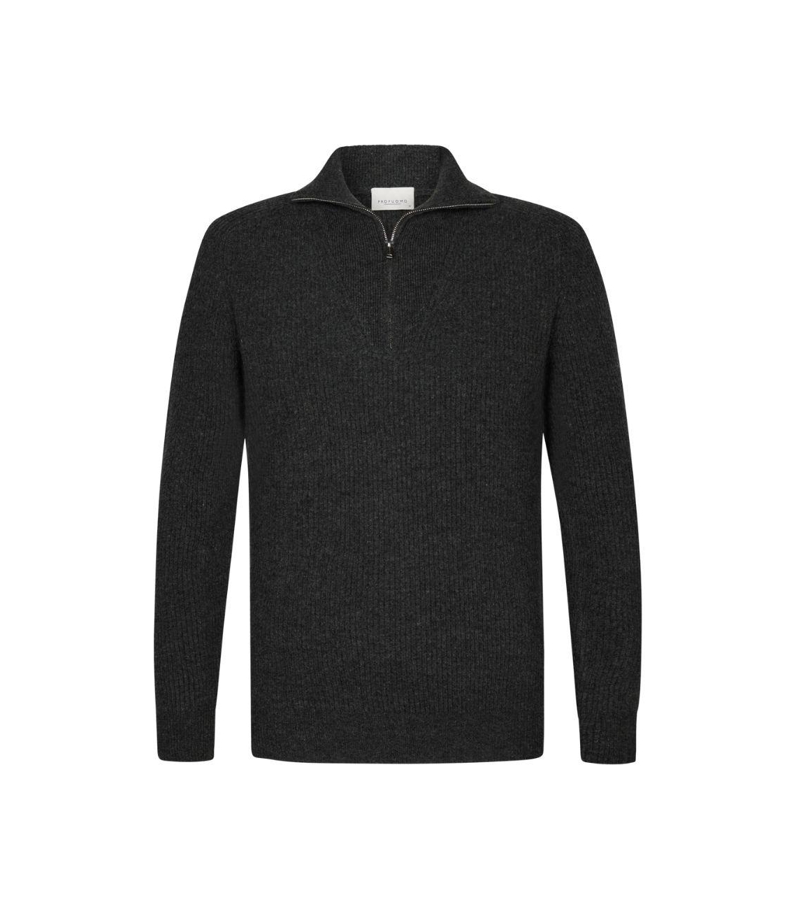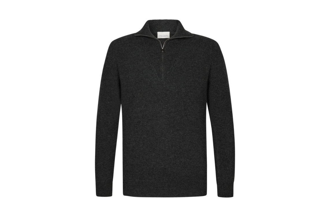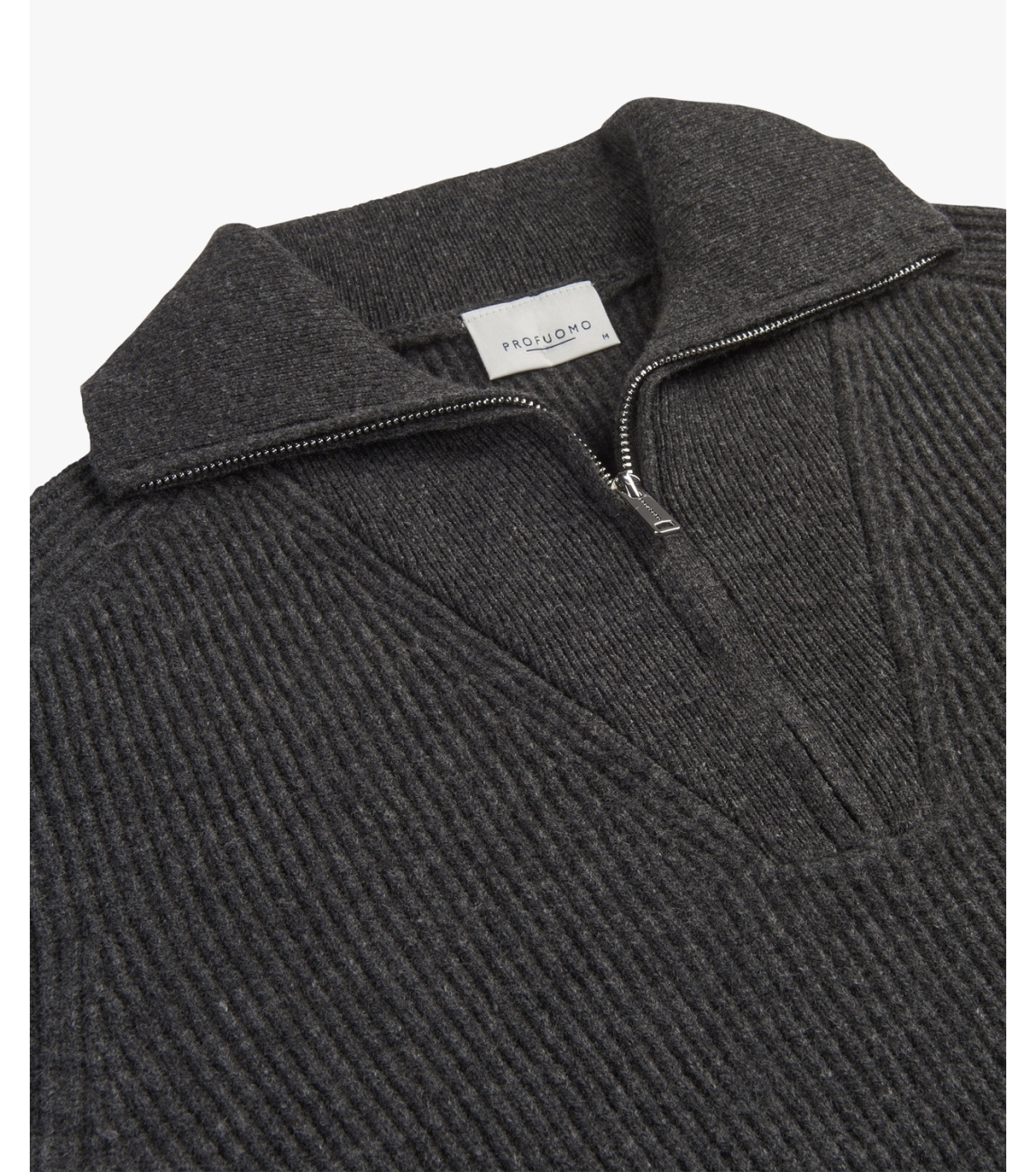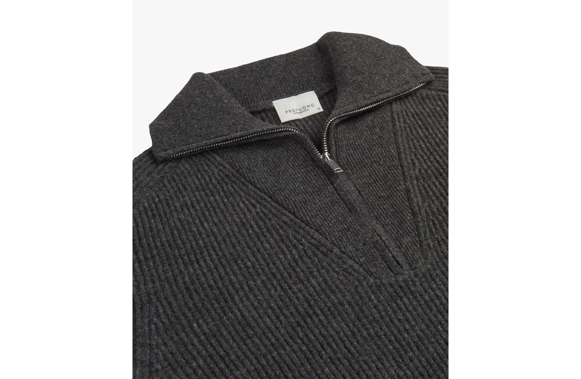 Profuomo PULLOVER HALF ZIP GREY Cgrey. Dit rechtvallende model heeft lange mouwen en opstaande boord. Deze grijze trui van Profuomo heeft elastische boorden, een gewoven sturctuur en een half zip.