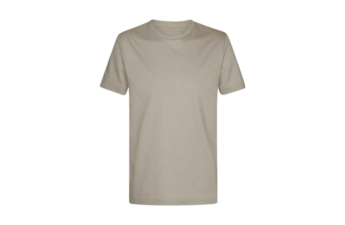Profuomo T-shirt ppwt10017e. Dit rechtvallende model is voorzien van een ronde hals. Deze beige t-shirt van Profuomo heeft korte mouwen.