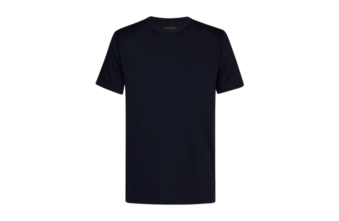 Profuomo T-shirt ppwt10017b. Dit rechtvallende model is voorzien van een ronde hals. Deze donkerblauwe t-shirt van Profuomo heeft korte mouwen.