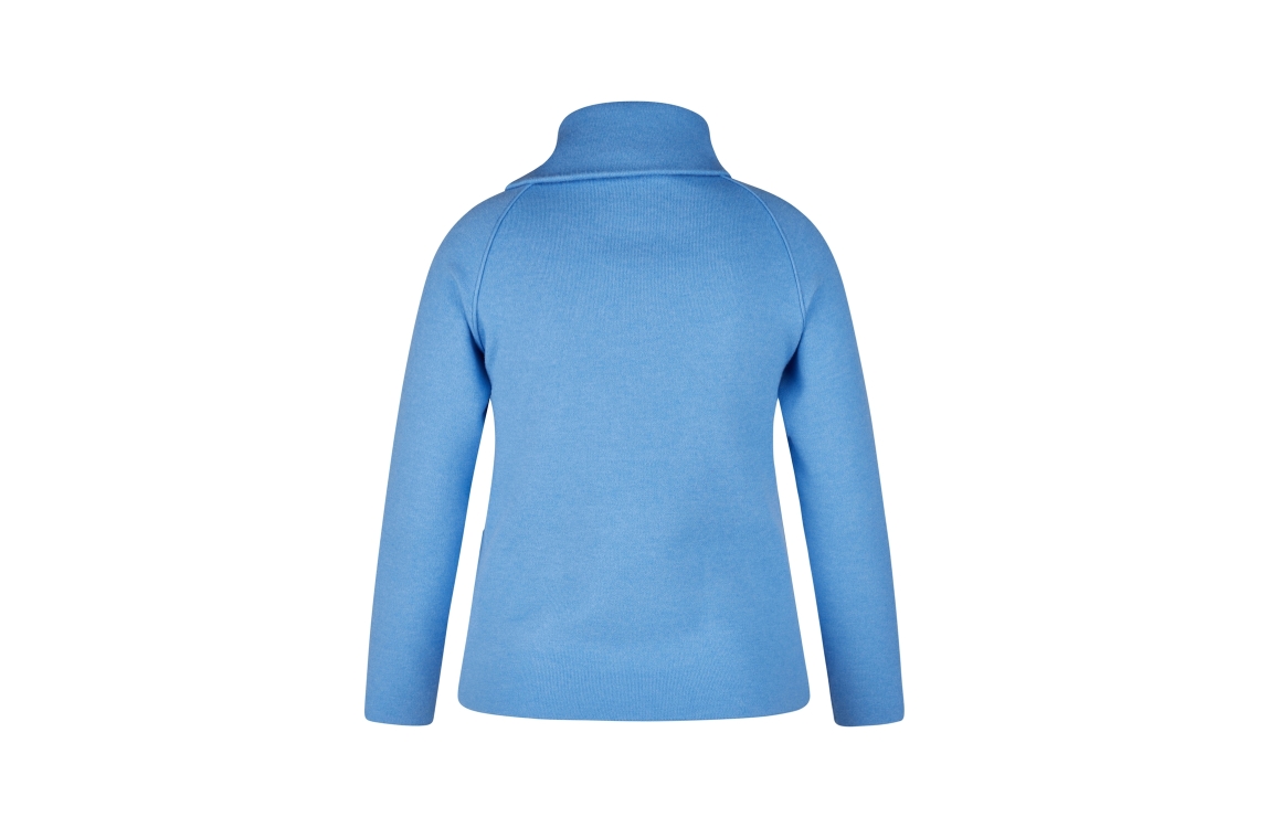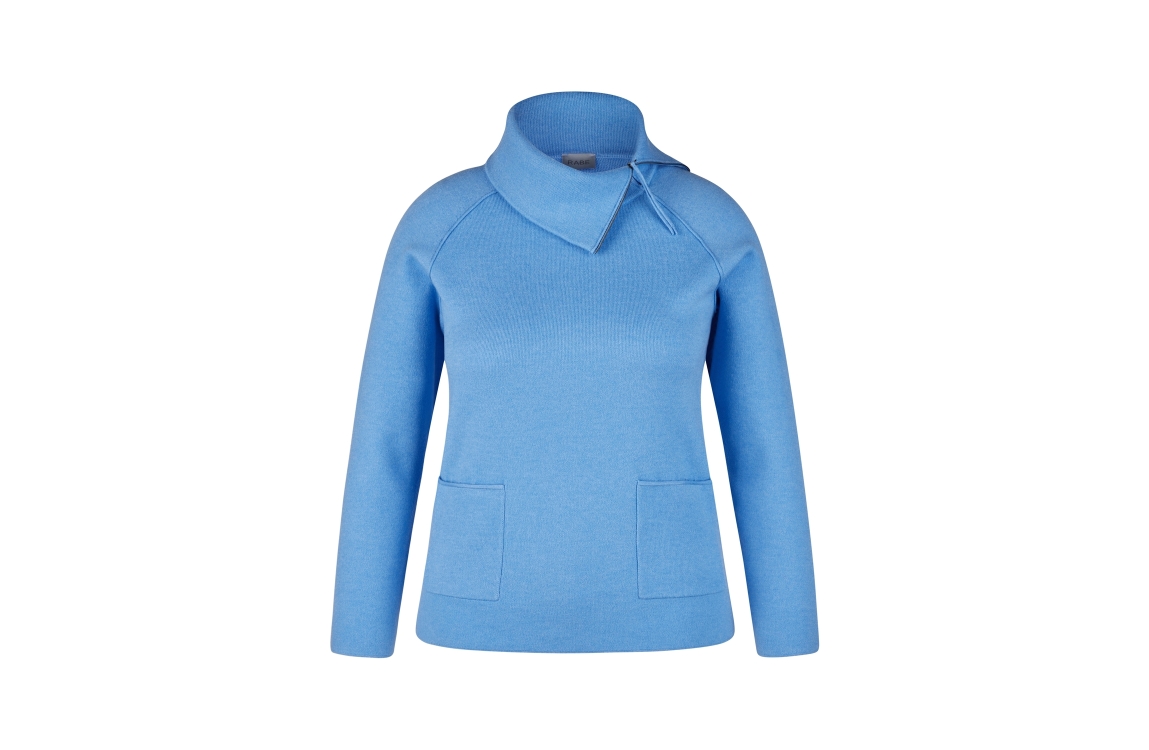 Rabe Online trui 53-124609. Dit rechtvallend model heeft een omgeslagen col met ritsdetail en lange mouwen. Deze blauwe trui van Rabe is uitgevoerd in stretch kwaliteit en is aan de voorzijde gedetailleerd met opgestikte zakken.