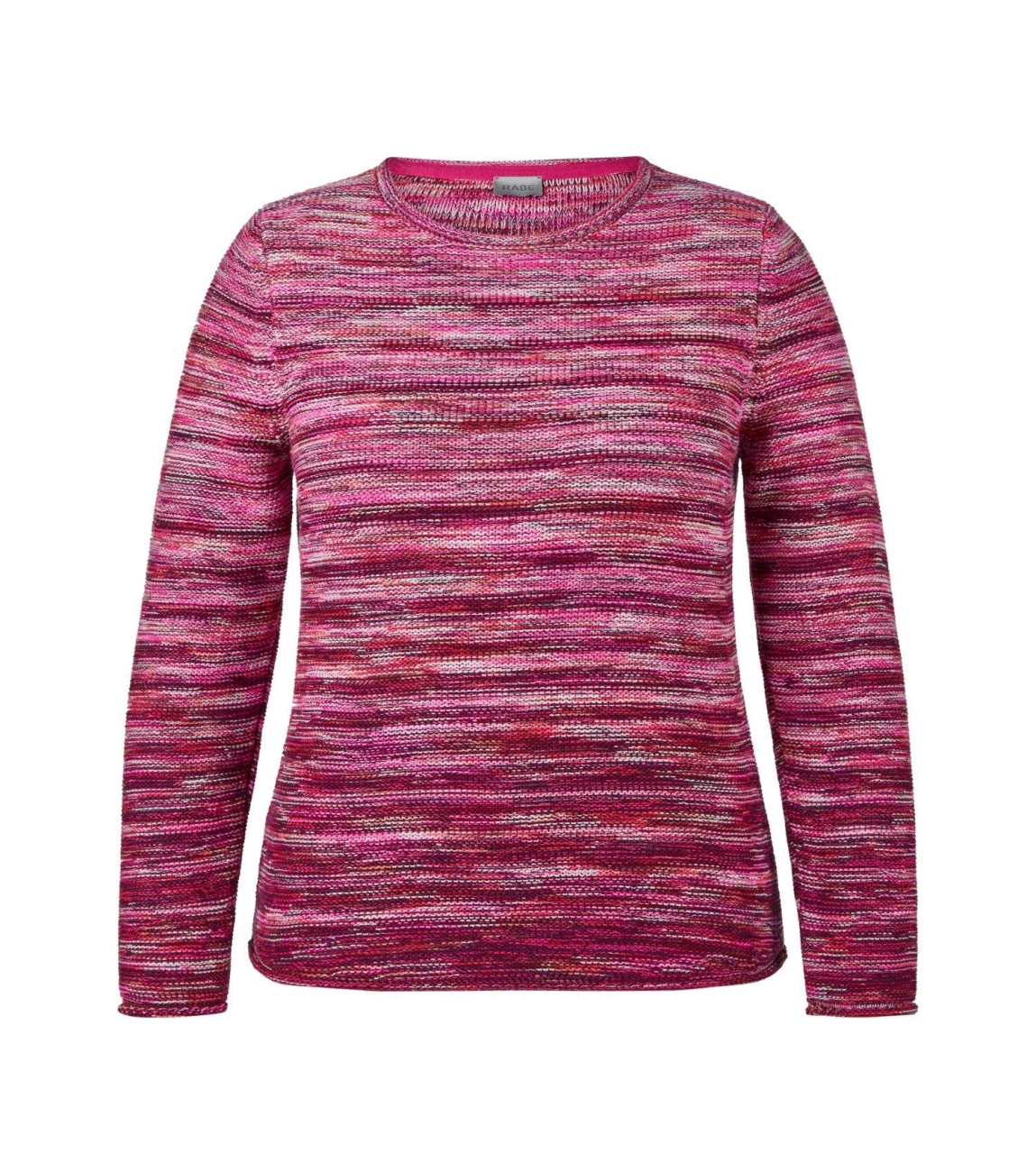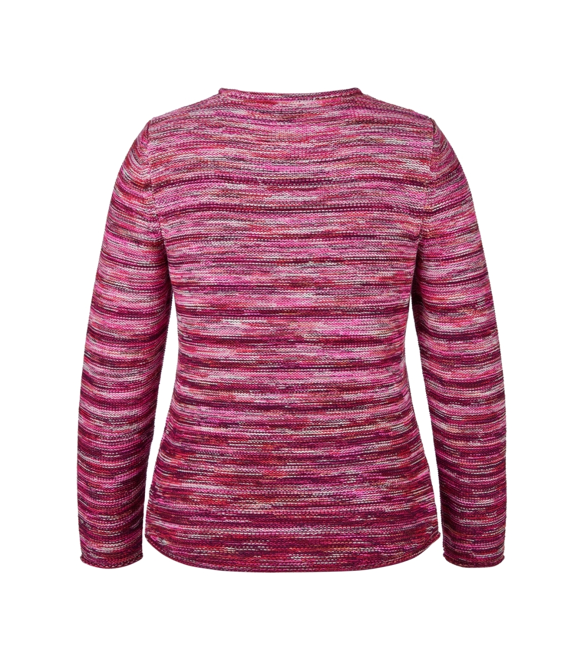 Rabe Pullover 5254 Malve. Dit rechtvallende model heeft een ronde hals en lange mouwen. Deze roze trui van Rabe is bewerkt met een verschillende kleuren.