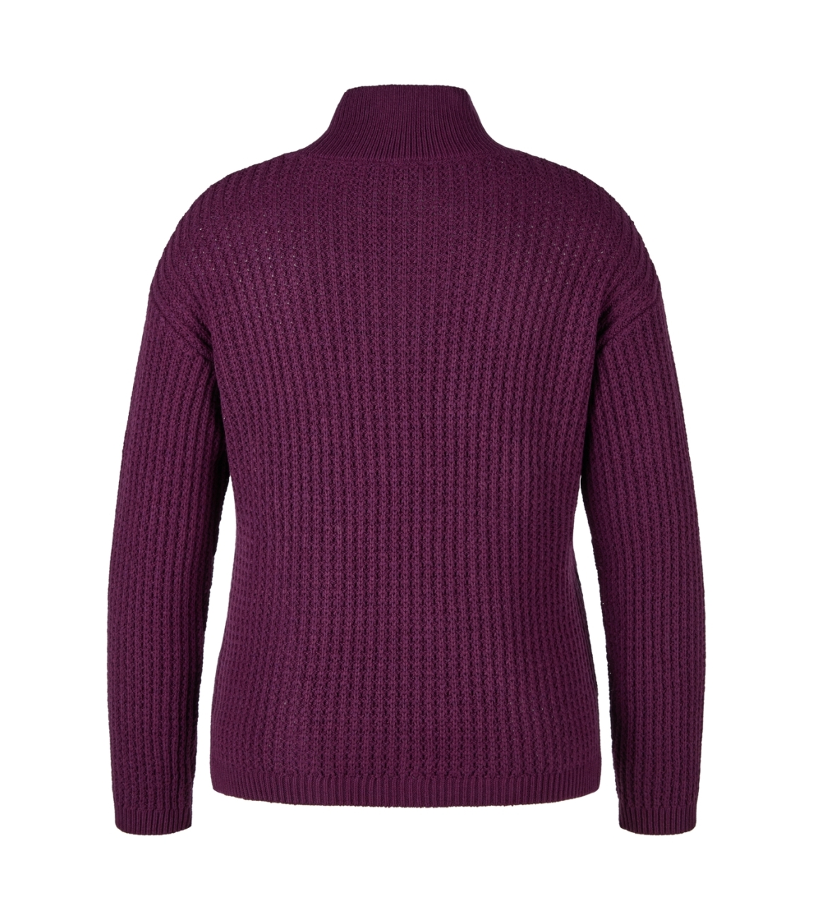Rabe Pullover 5287 Pflaume. Dit rechtvallende model heeft een col en lange mouwen. Deze paarse trui van Rabe beschikt over een gebreide stof.