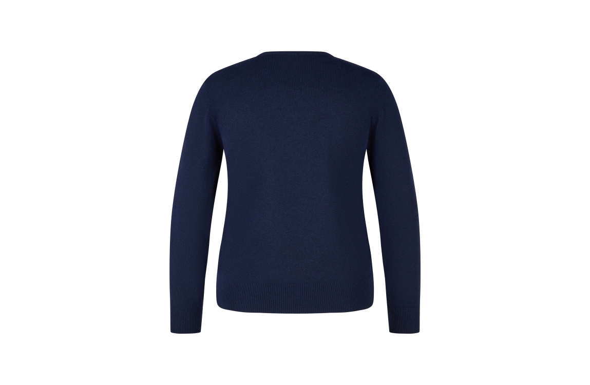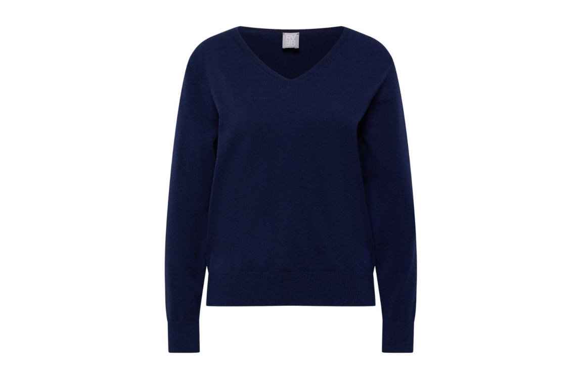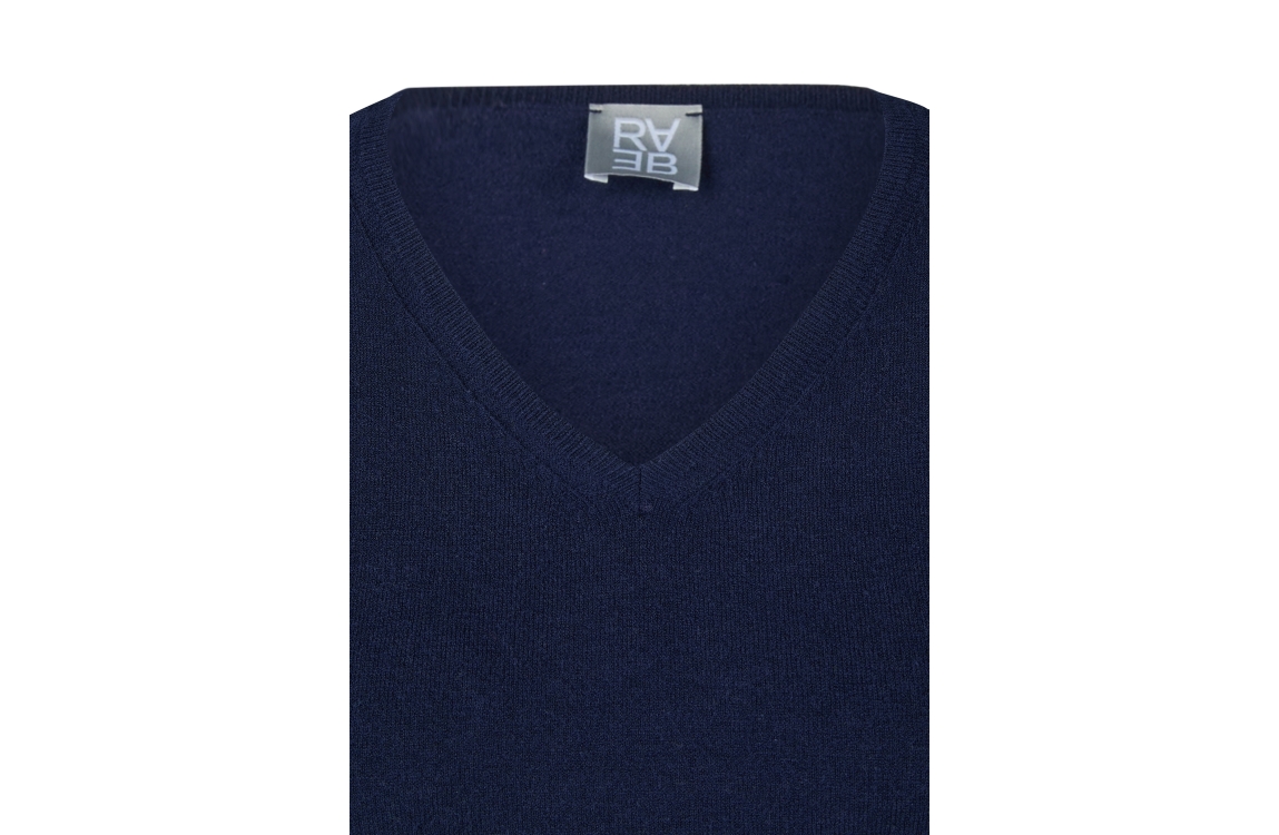 Rabe pullover 55-123622 5374. Dit rechtvallende model heeft een V-hals en lange mouwen. Deze donkerblauwe pullover van Rabe is uitgevoerd in een fijn breisel en is afgewerkt met ribgebreide boorden