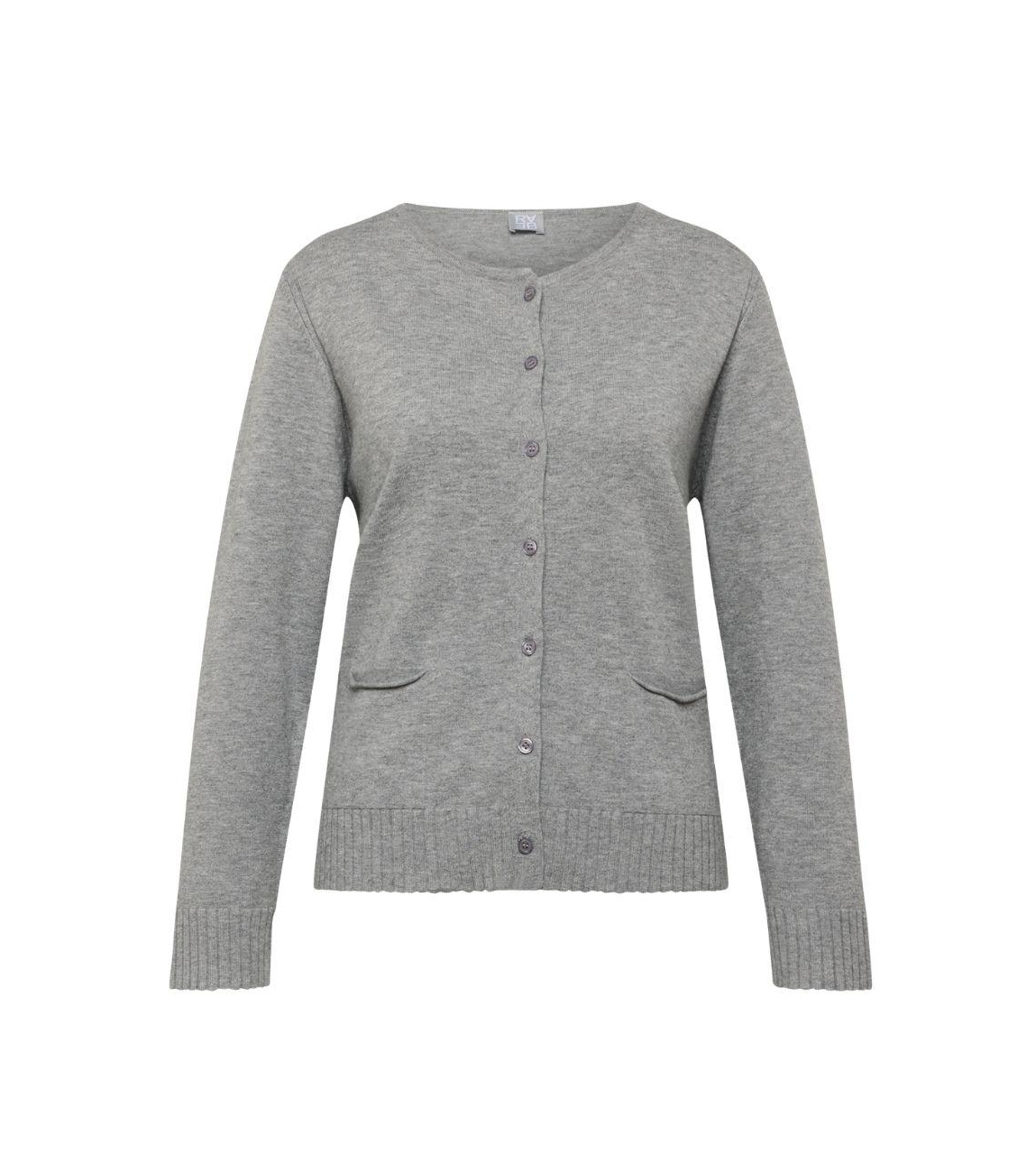 Rabe vest 55-122523. Dit rechtvallend model is voorzien van een ronde hals en heeft lange mouwen. Deze grijze vest van Rabe sluit door middel van knopen en beschikt over twee opgestikte zakken. Dit vest is bewerkt met ribboorden.