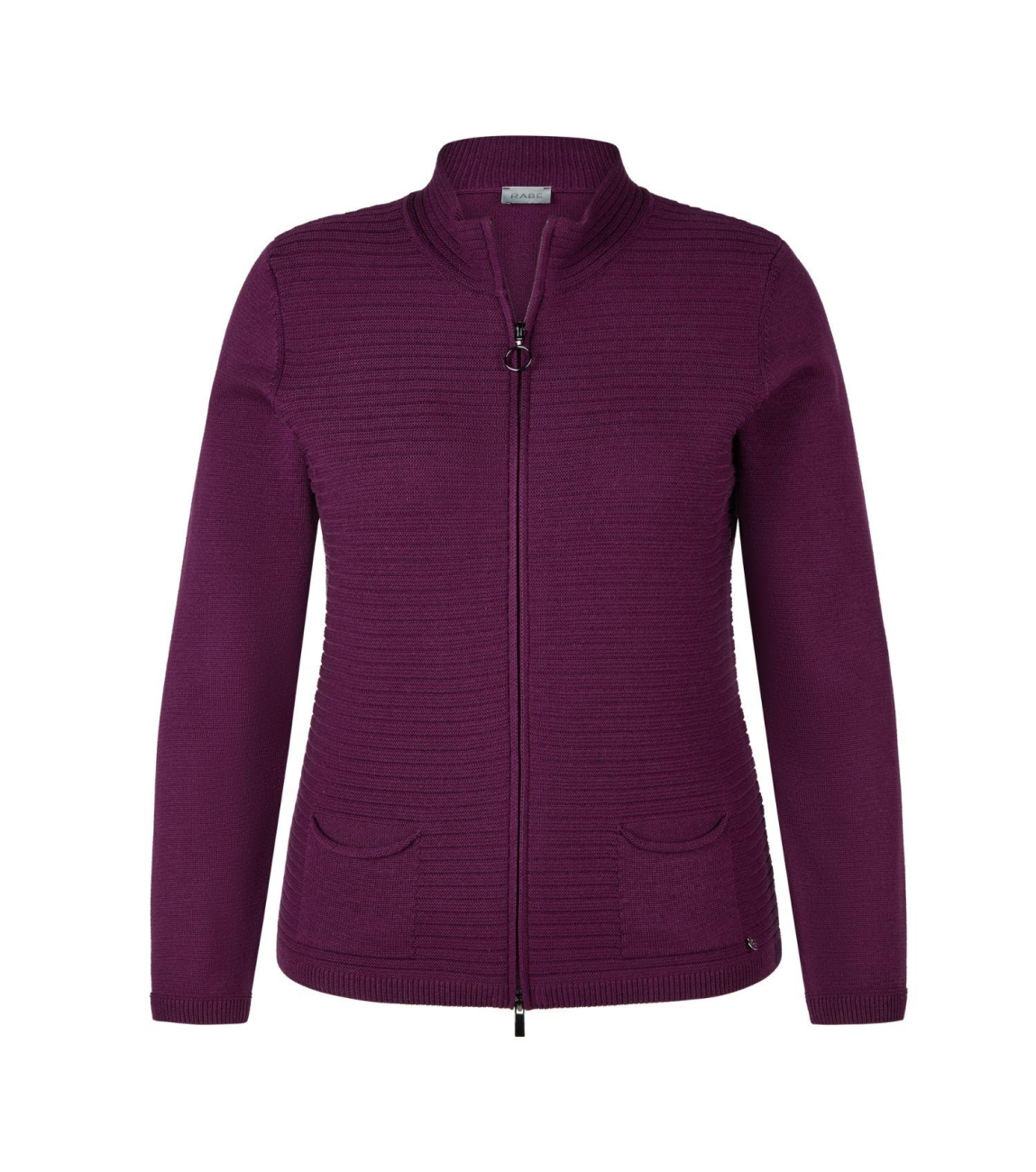 Rabe Strickjacke 5287 Pflaume. Dit rechtvallende model heeft een ronde hals en lange mouwen. Dit paarse vest van Rabe sluit door middel van een rits en beschikt over zakken op het voorpand.