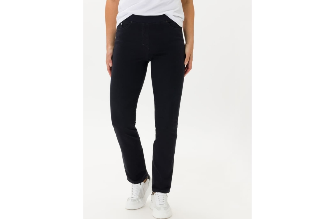 Raphaela by Brax PAMINA 28 broek 11-1807 10949420. Het rechtvallend model sluit door middel van een elastische boord. Deze donkerblauwe broek van Raphaela by Brax is voorzien van verschillende broekzakken en gemaakt van een comfortabel materiaal.