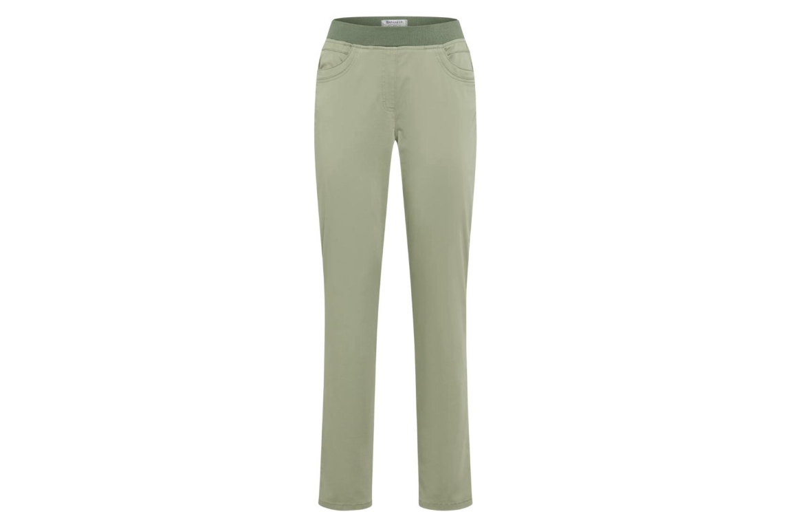 Raphaela by Brax PAMINA broek 11-1908. Dit rechtvallend model sluit door middel van een elastische boord. Deze groene broek van Raphaela by Brax is voorzien van verschillende broekzakken.