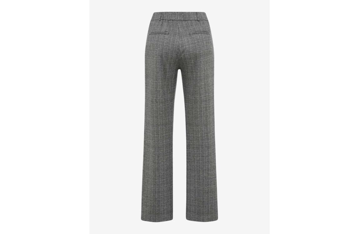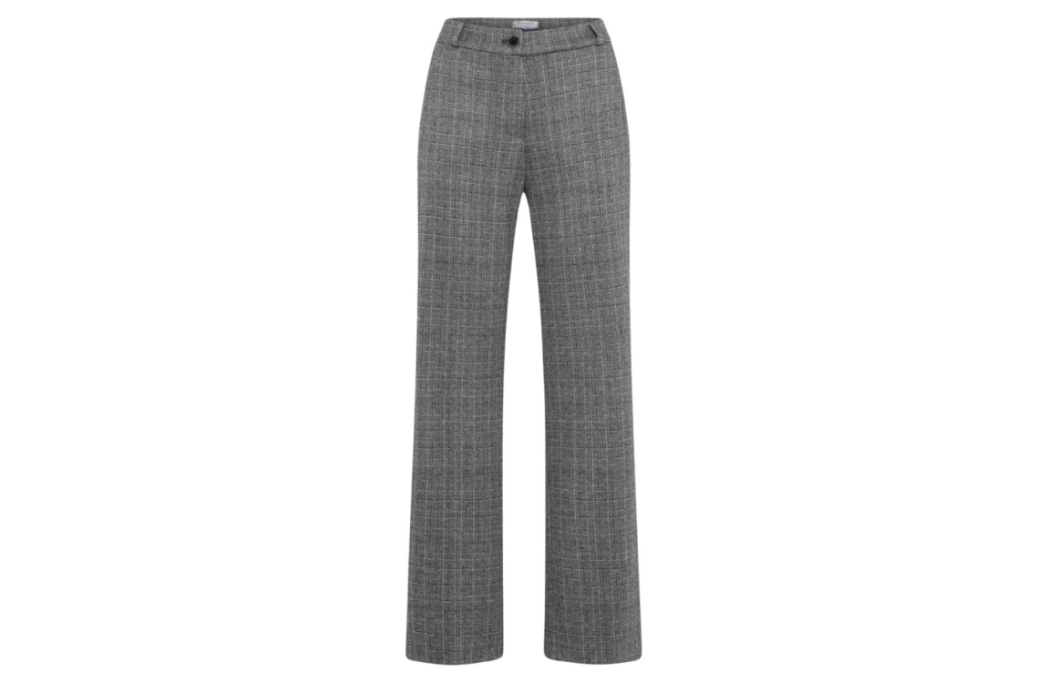Raphaela by Brax PEGGY FLARED broek 17-5588 10229920. Het flared model sluit door middel van een knoop en rits. Deze grijze ruitjes broek van Raphaela by Brax is voorzien van riemlusjes en afgewerkt met verschillende broekzakken.
