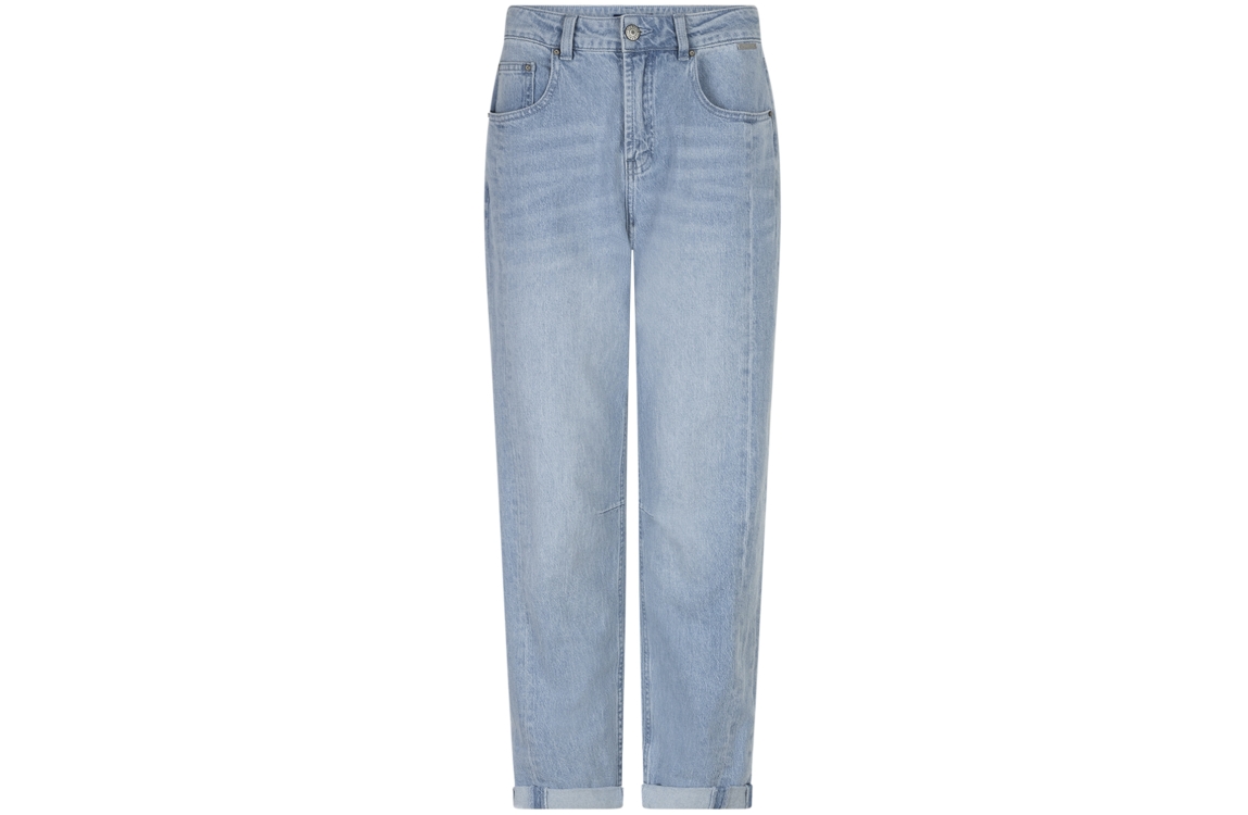 Red Button jeans Caitlina SRB4824. Dit barrel model sluit door middel van een knoop en rits. Deze blauwe jeans van Red Button is aan de voor- en achterzijde voorzien van twee steekzakken en is voorzien van een decoratieve naad aan beide zijden.