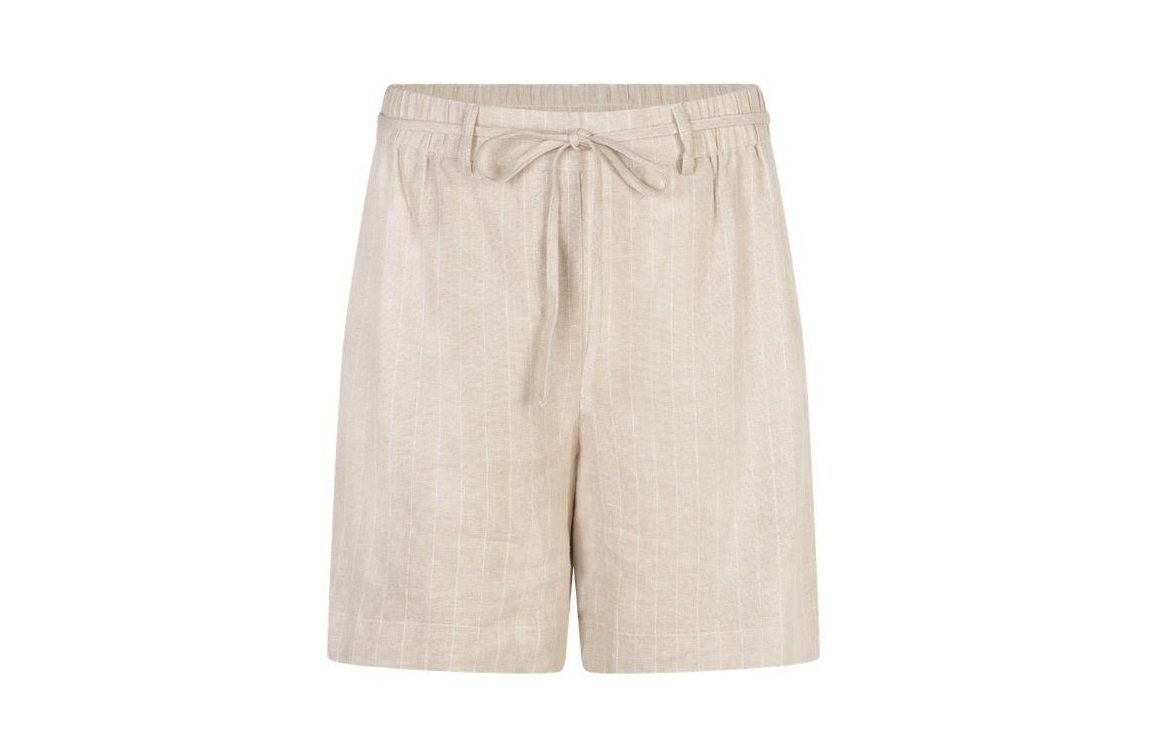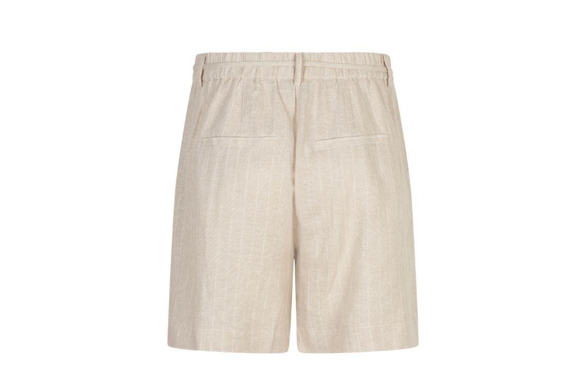 Red Button short SRB4914 99. Dit regular fit model sluit door middel van een knoop- en ritssluiting en is voorzien van een strikkoord. Deze zandkleurige short van Red Button is uitgevoerd met een streepprint en is voorzien van twee steekzakken aan de voorzijde en twee paspelzakken aan de achterzijde.