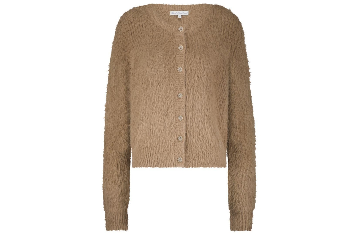 Red Button cardigan SRB4643. Dit regular fit model heeft een ronde halslijn en lange mouwen. Deze bruine cardigan van Red Button sluit aan de voorzijde door middel van knopen en is uitgevoerd in Fuzzy-stof.