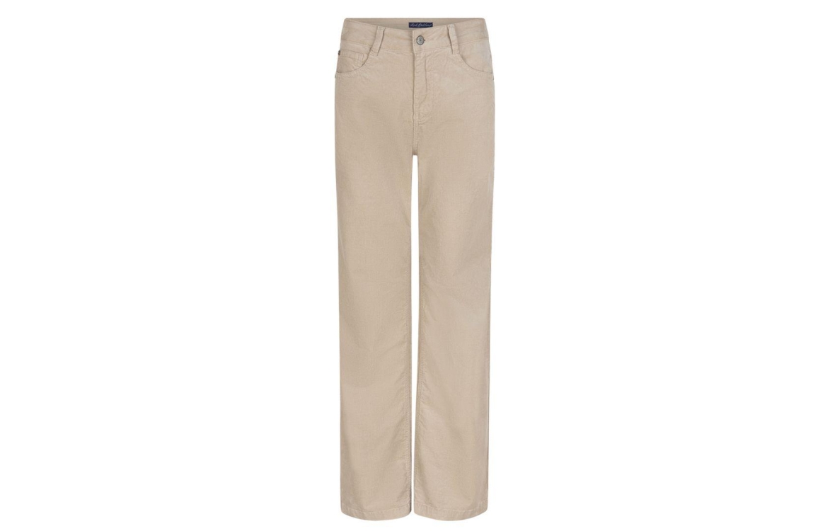 Red Button broek SRB4581. Dit wide leg model sluit door middel van een knoop en rits afgewerkt met ceintuurlussen. Deze beige broek van Red Button is uitgevoerd in een 5-pocket model en in een corduroy kwaliteit.