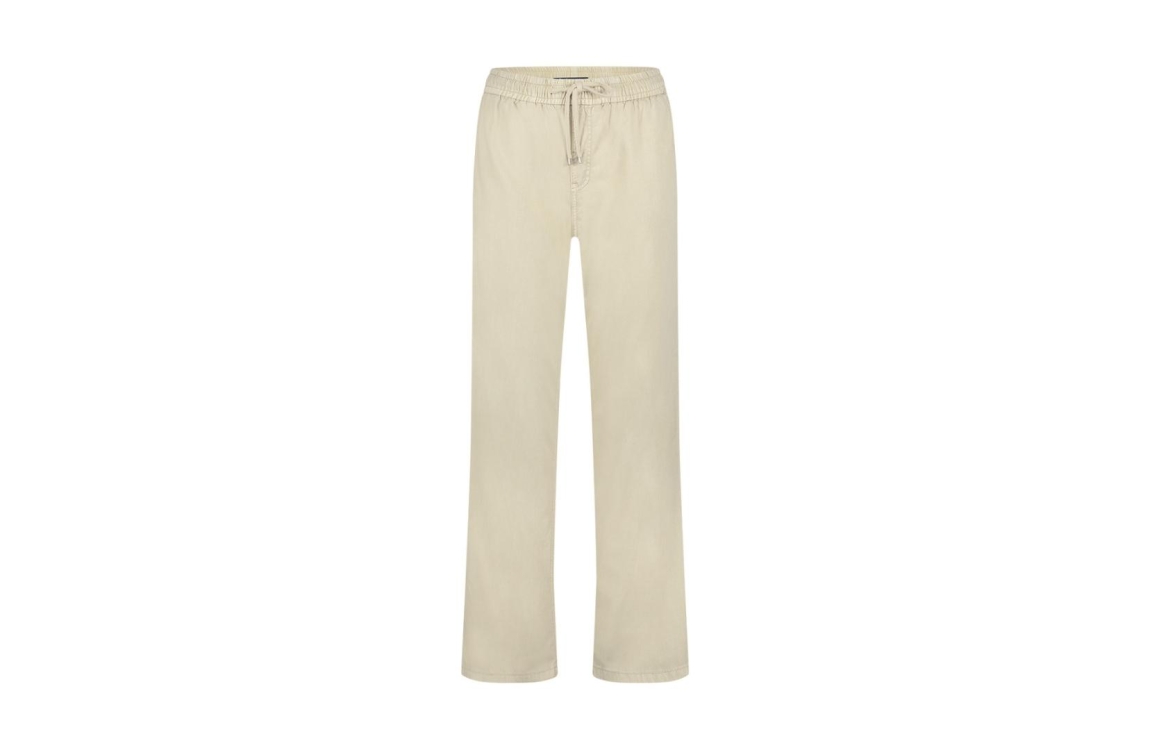 Red Button broek srb4505. Dit wide leg model sluit door middel van een elastische boord met trekkoorden. Deze beige broek van Red Button is voorzien van twee steekzakken aan de voorzijde en twee paspelzakken aan de achterzijde.