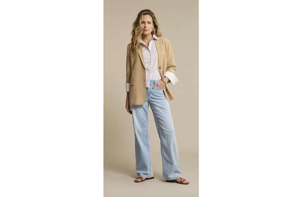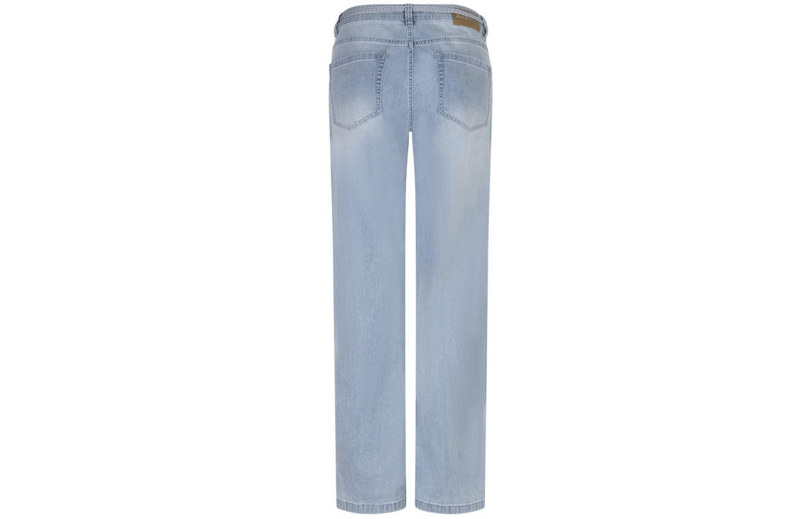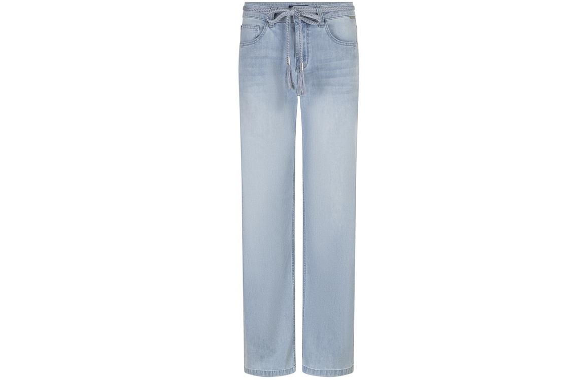 Red Button jeans Colette & Belt SRB4848. Dit wide leg model sluit door middel van een knoop en rits en is voorzien van een gevlochten ceintuur. Deze lichtblauwe jeans van Red Button is aan de voor- en achterzijde voorzien van twee steekzakken.