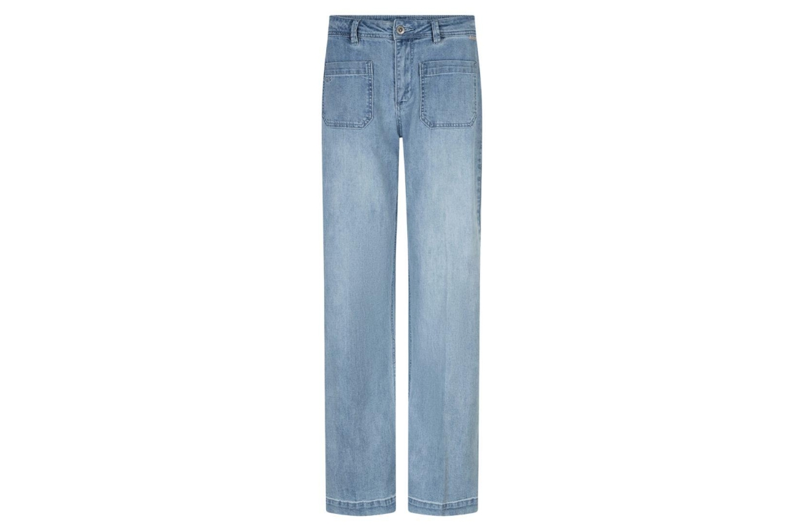 Red Button broek SRB4860 633. Dit wide leg model sluit door middel van een knoop- en ritssluiting en is voorzien van ceintuurlussen. Deze denim broek van Red Button beschikt over twee opgestikte zakken aan de voor- en achterzijde en is afgewerkt met een bruinkleurige patch aan de achterzijde.