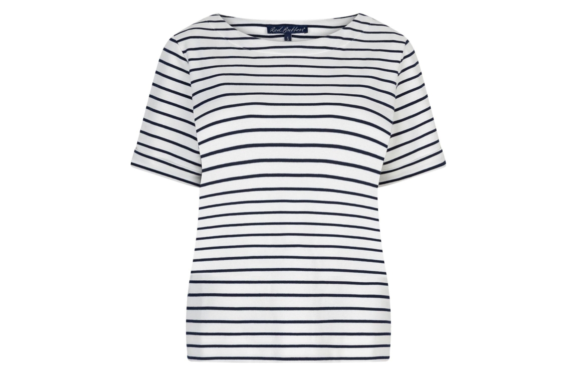 Red Button De Terry Stripe Short Sleeve is een 158 Dark blue. Dit rechtvallende model is voorzien van een ronde hals en korte mouwen. Deze witte top van Red Button is bewerkt met horizontale donker blauwe strepen.