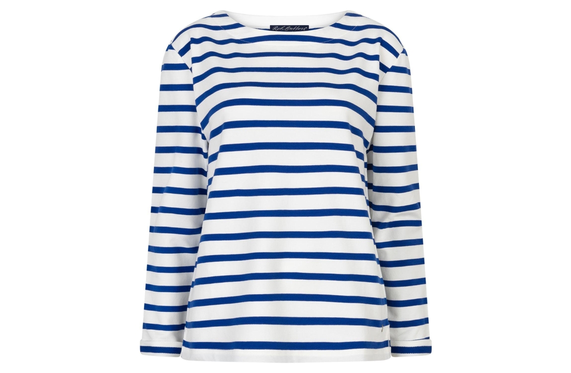 Red Button De Terry Stripe without Logo is een 96 Cobalt. Dit rechtvallende model is voorzien van een ronde hals en lange mouwen. Deze witte top van Red Button is bewerkt met horizontale blauwe strepen. Dit model is verkrijgbaar in verschillende kleuren.