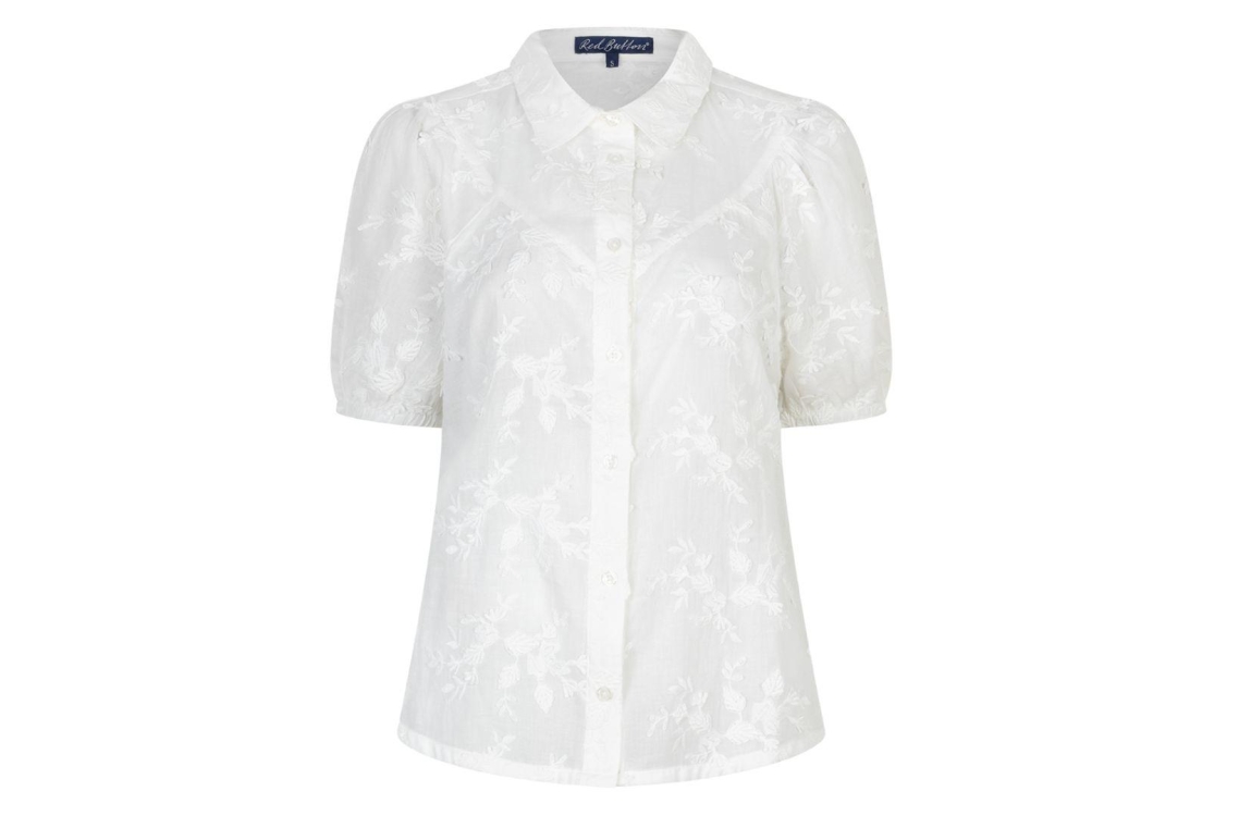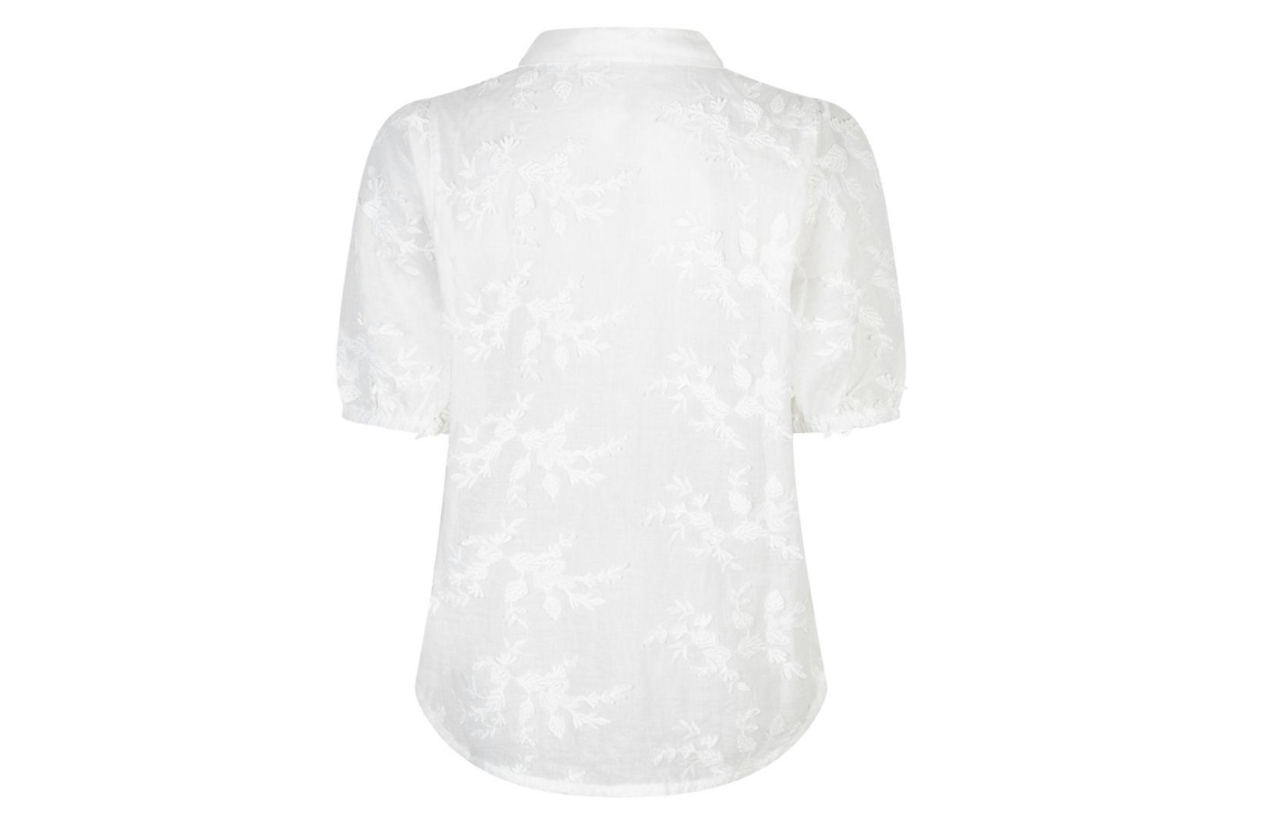 Red Button blouse SRB4826. Dit regular fit model heeft een kraag en korte pofmouwen. Deze witte blouse van Red Button sluit aan de voorzijde door middel van knopen en is all-over bewerkt met een 3D bloemenprint. Het model is afgewerkt met elastische mouwen.