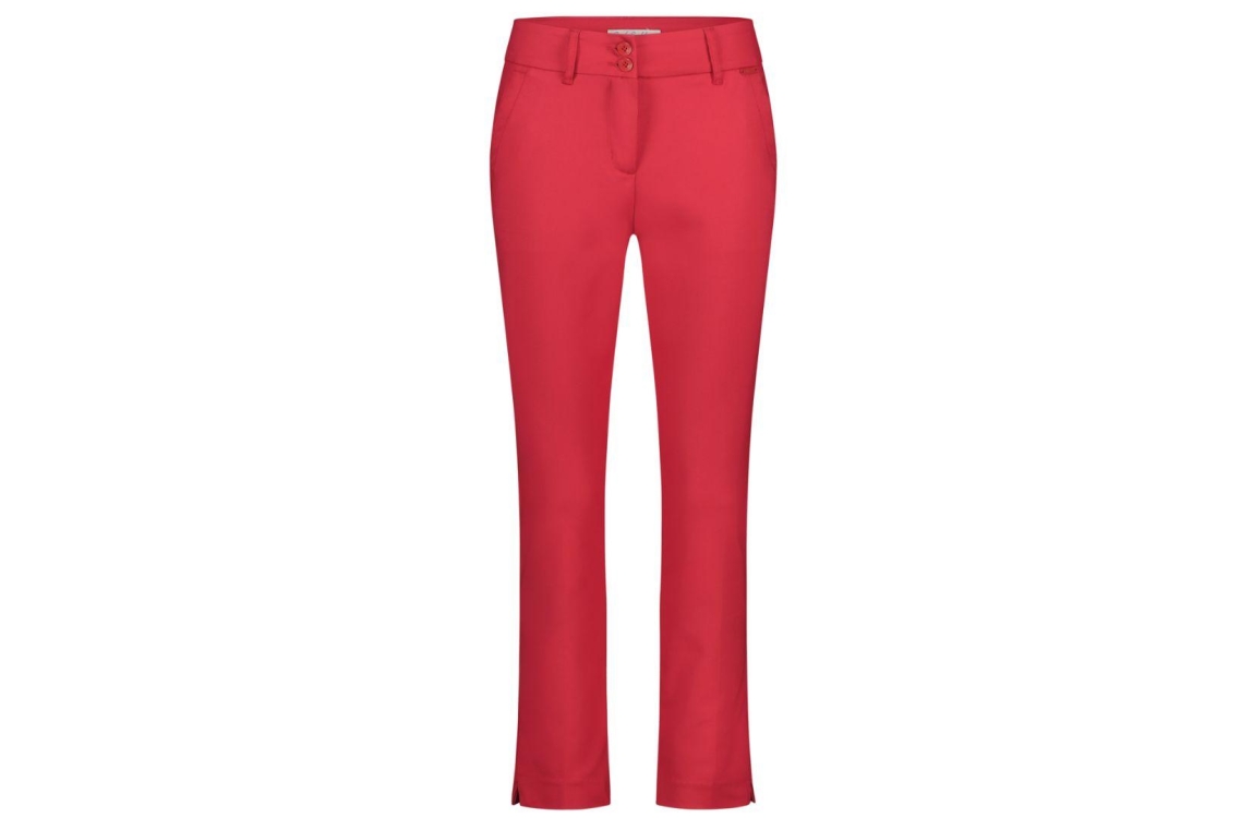 Red Button diana crp smart broek SRB4493. Dit rechtvallende model sluit door middel van een knoop en een rits. Deze rode broek van Red Button is voorzien van steekzakken en riemlusjes en uitgevoerd in een stretch materiaal.