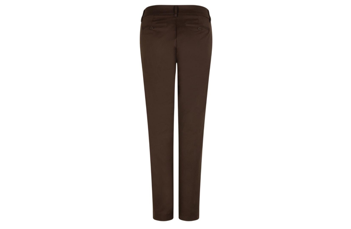 Red Button broek Diana Smart SRB4661. Dit rechtvallend fit model sluit door middel van knopen en ritsaansluiting en heeft ceintuurlussen. Deze bruine Red Button broek beschikt over twee steekzakken aan de voorzijde en heeft twee paspelzakken aan de achterzijde.