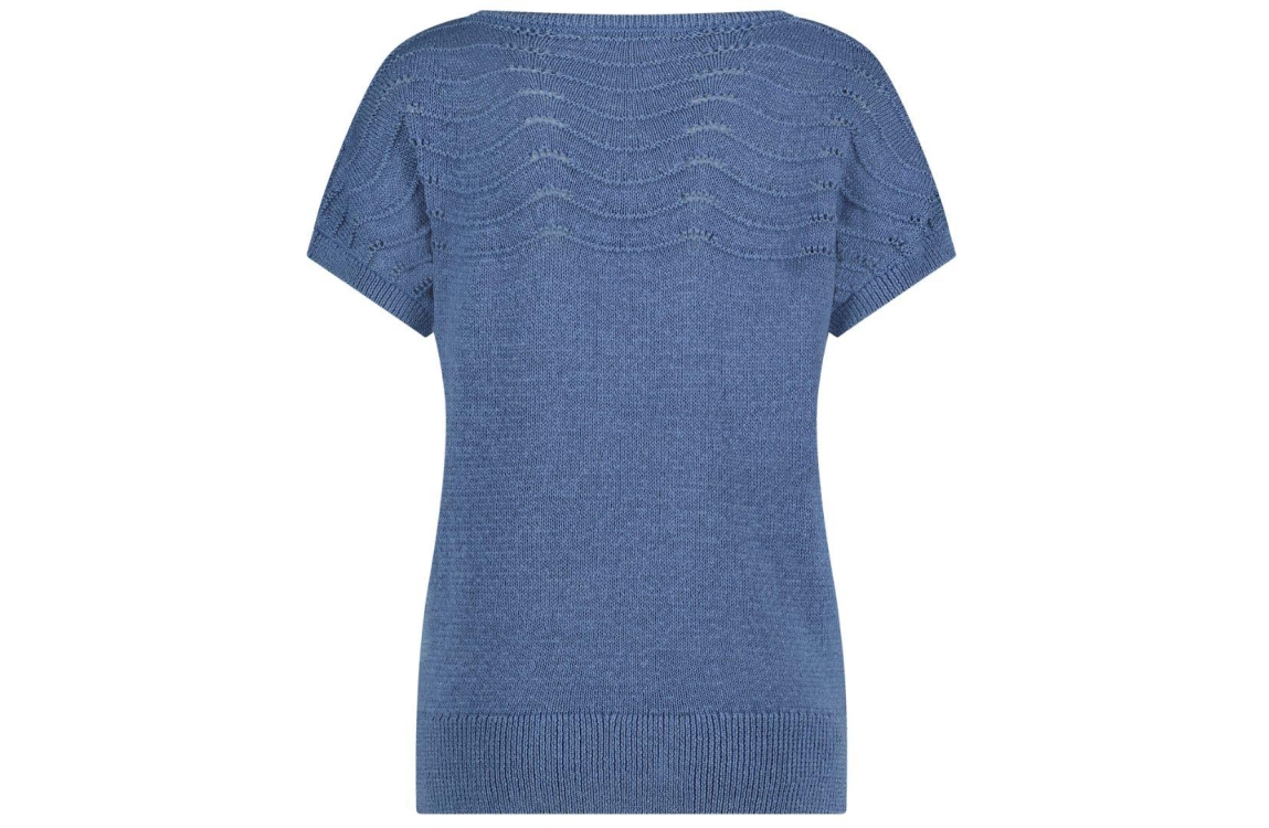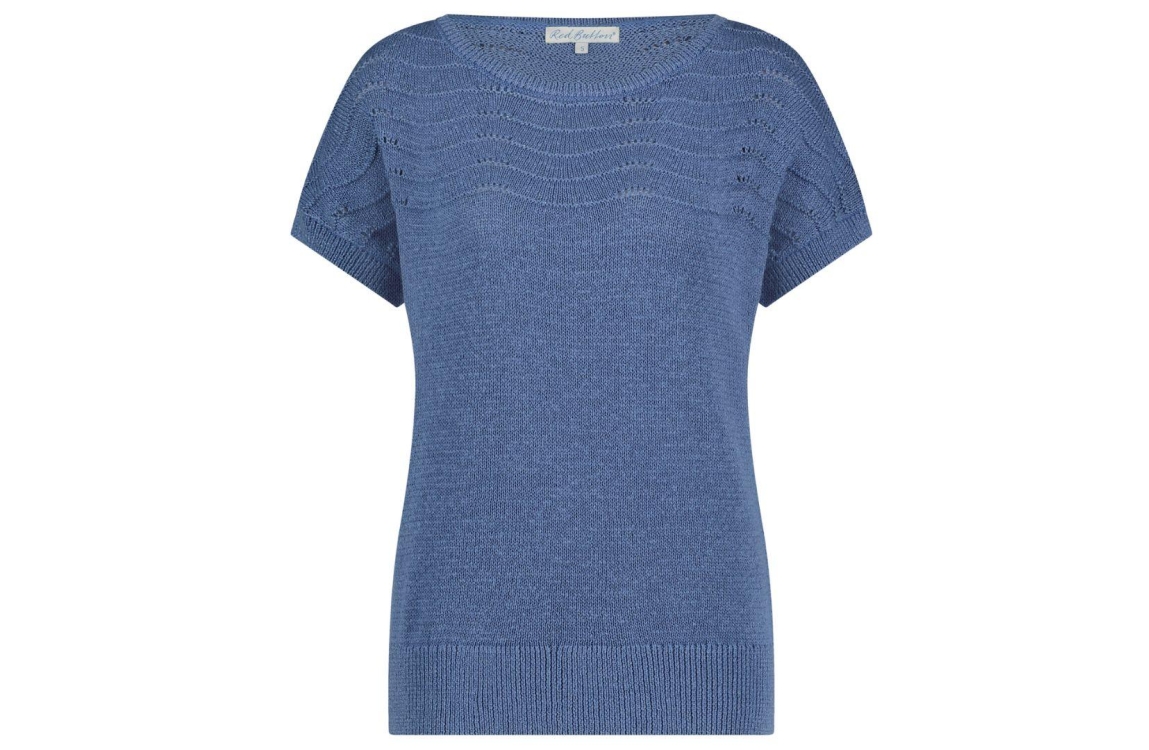 Red Button Jerry top SRB4483. Dit rechtvallend model is voorzien van een ronde hals en heeft korte mouwen. Deze blauwe top van Red Button is aan de bovenzijde bewerkt met een golvende structuur.