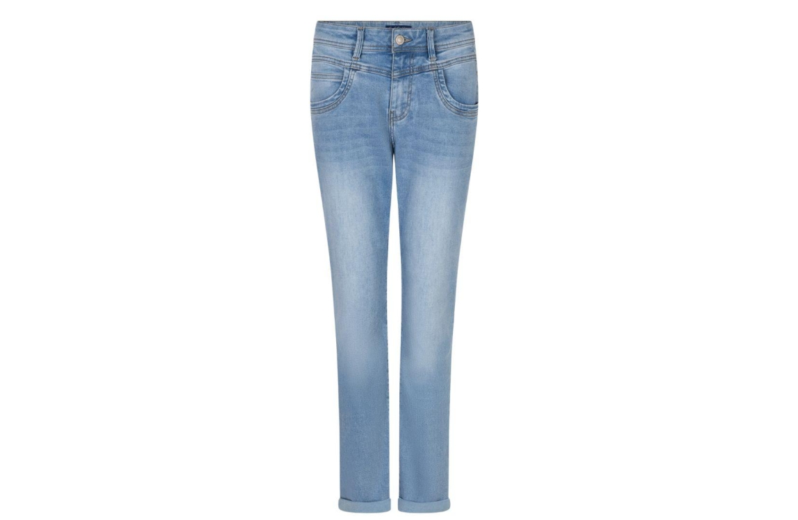 Red Button broek SRB4900 220. Dit regular fit model sluit door middel van een knoop- en ritssluiting en is voorzien van ceintuurlussen. Deze denim broek van Red Button is uitgevoerd in een 5-pocket model en is afgewerkt met een bruinkleurige patch aan de achterzijde.