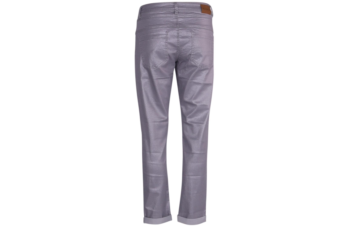 Red Button broek SRB4289. Dit regular fit model sluit door middel van een knoop en ritssluiting en beschikt over ceintuurlussen. Deze zilverkleurige broek beschikt over twee steekzakken aan de voor- en achterzijde en is all-over bewerkt met een glitter lurex.