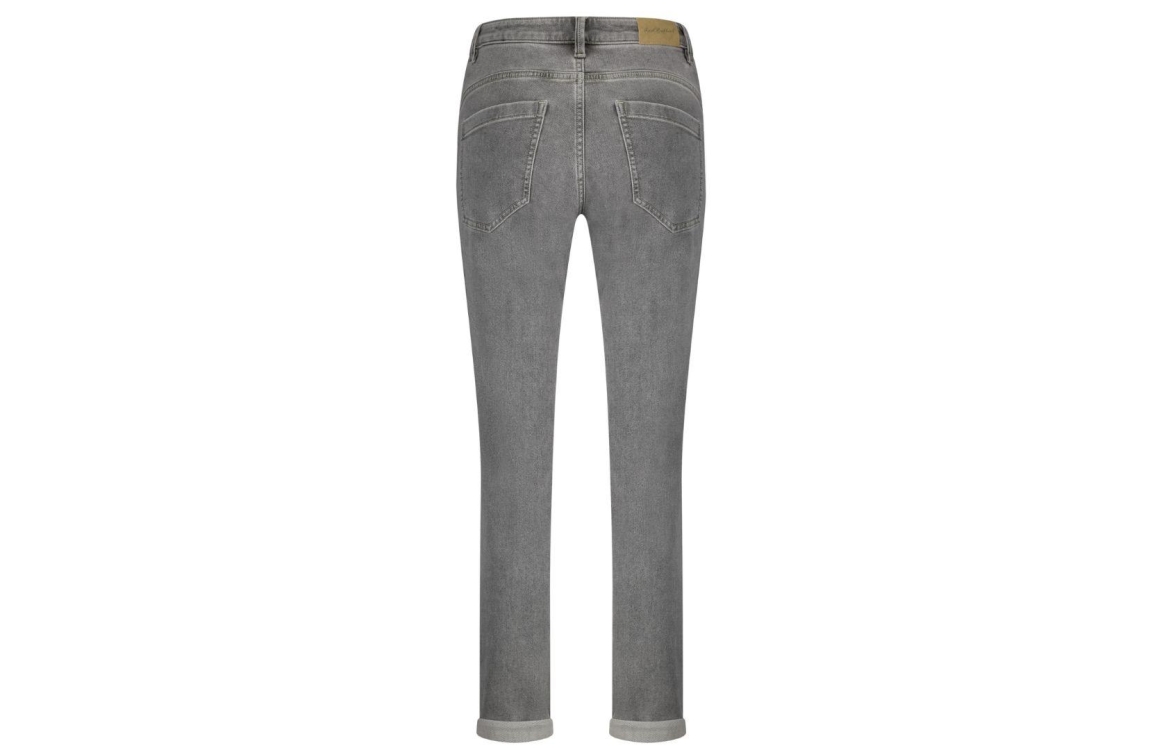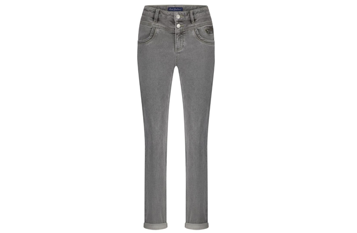 Red Button broek SRB4706. Dit slim fit model sluit door middel van knopen en een rits afgewerkt met ceintuurlussen. Deze grijze denim van Red Button beschikt over twee steekzakken met ritszakje aan de voorzijde en twee steekzakken aan de achterzijde.