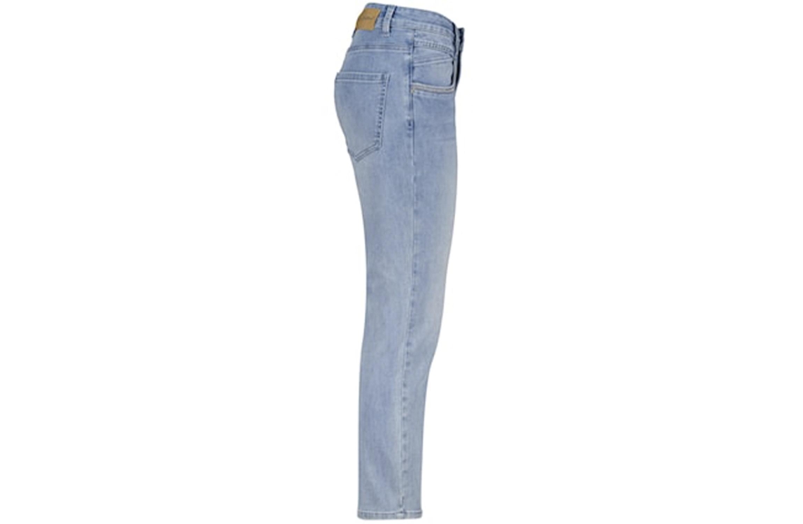 Red Button broek SRB4226 Sissy. Dit slim fit model sluit door middel van een knoop en rits en heeft lange pijpen. Deze blauwe broek van Red Button is afgewerkt met twee steekzakken aan de voor- en achterzijde. Aan de voorzijde is deze broek bij de zak afgewerkt met een gevlochten bies.