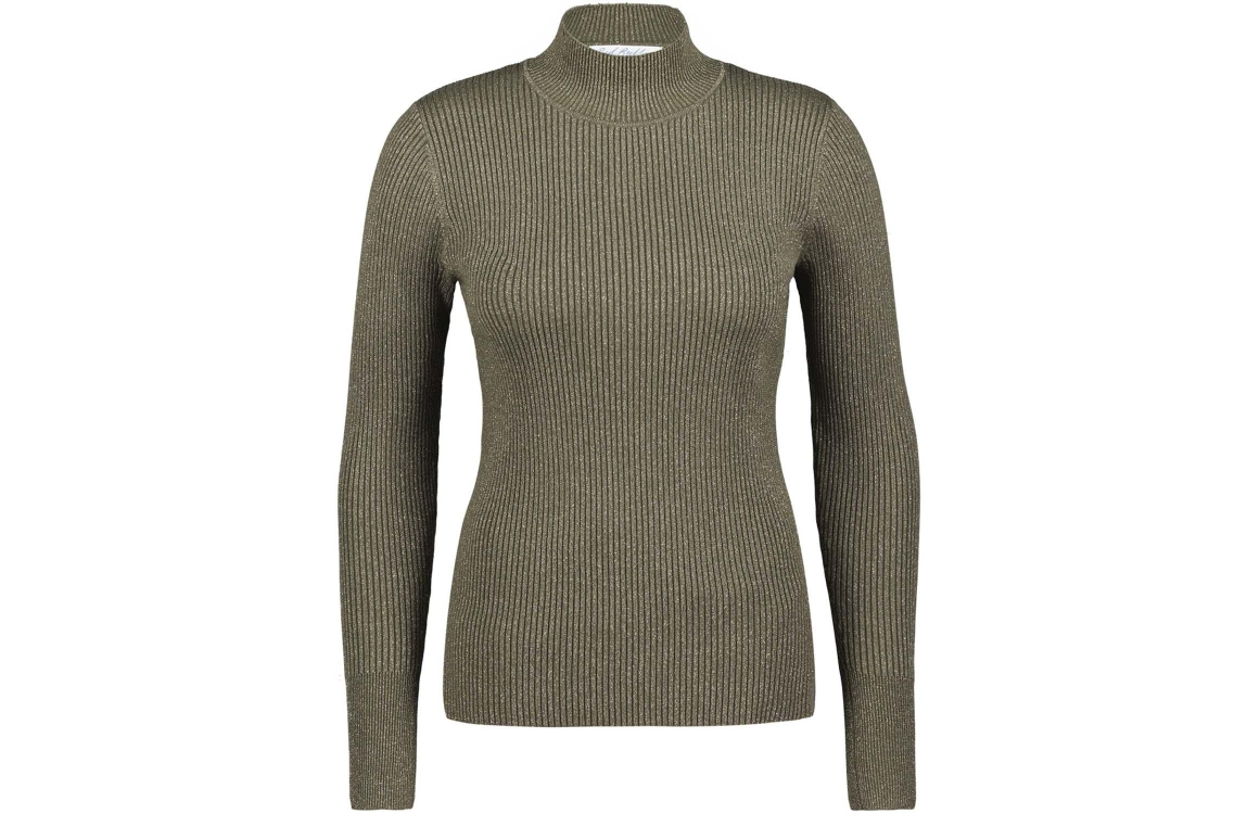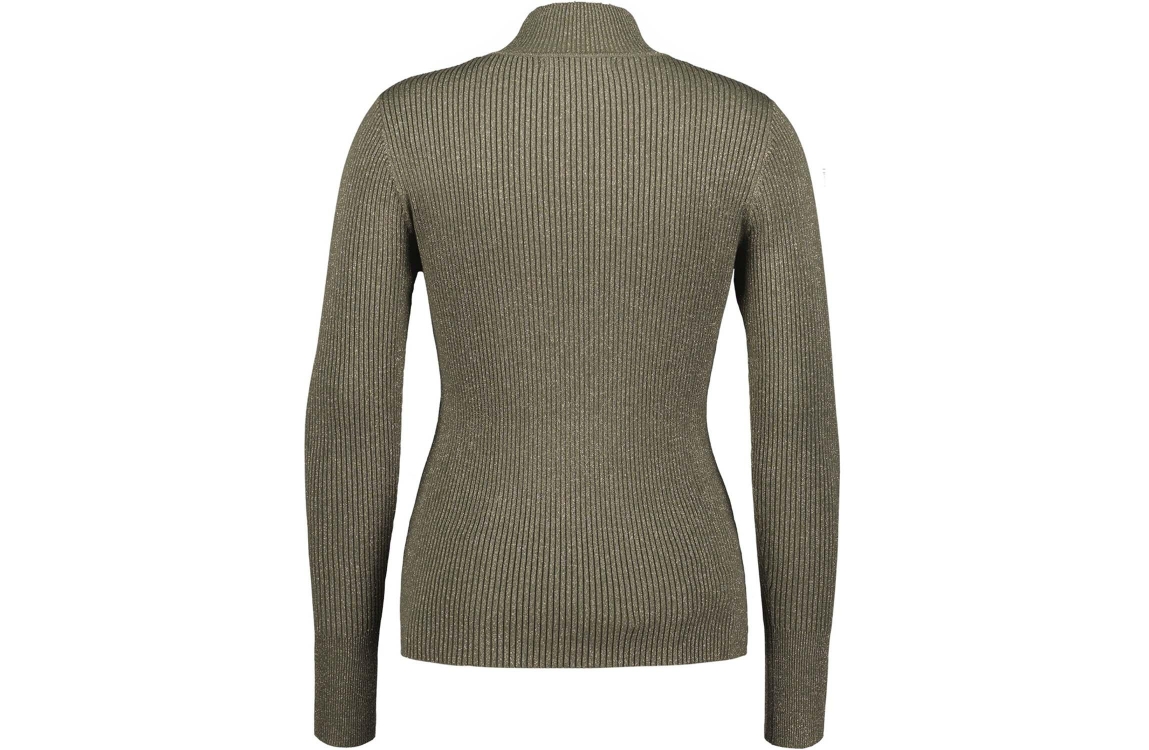 Red Button pullover SRB4344. Dit rechtvallend model is voorzien van een turtle en heeft lange mouwen. Deze groene pullover van Red Button is geribd uitgevoerd bewerkt met glitter.
