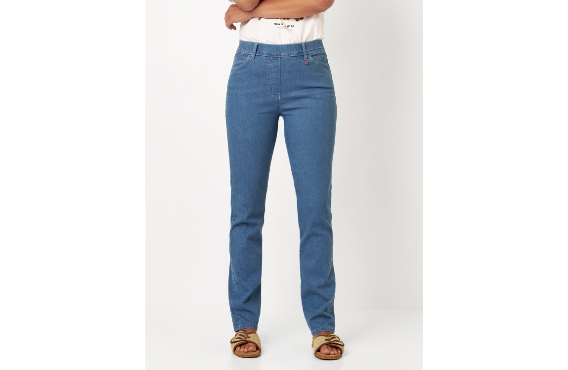 Relaxed by Toni broek Alice 21-31/2800-78. Dit rechtvallend model sluit door middel van een elastische tailleband. Deze denim broek van Relaxed by Toni beschikt over twee steekzakken aan de voor- en achterzijde. Het model is uitgevoerd in stretchkwaliteit.