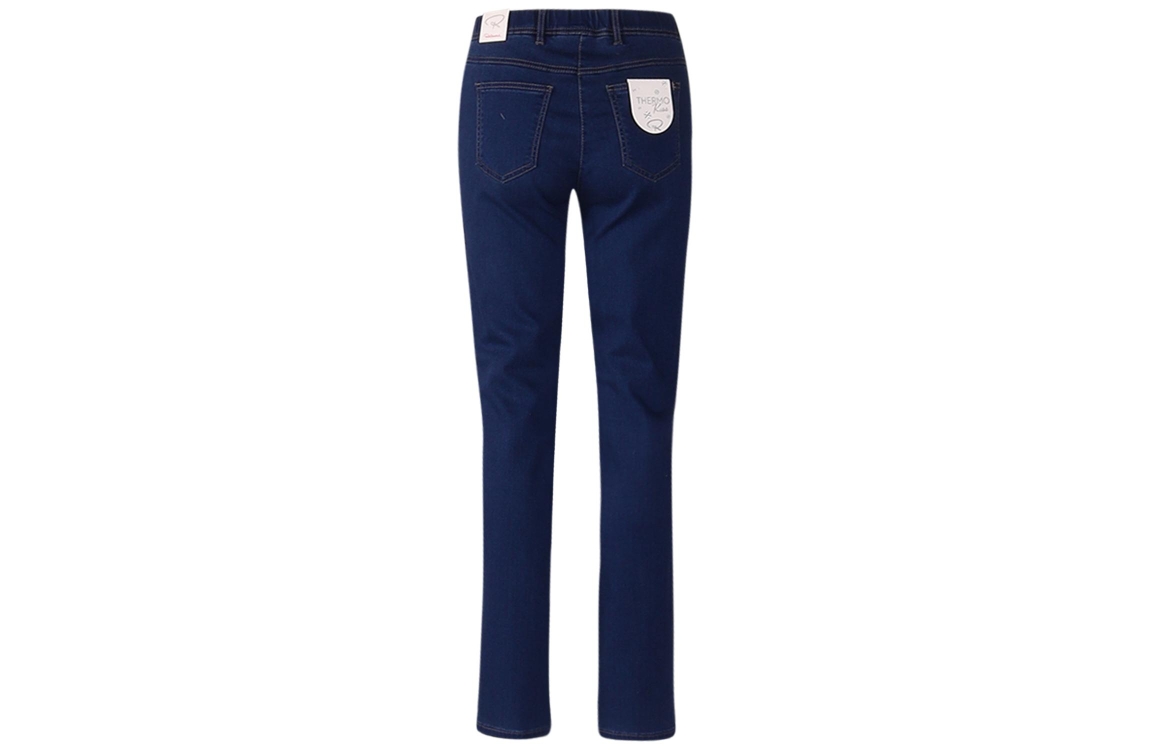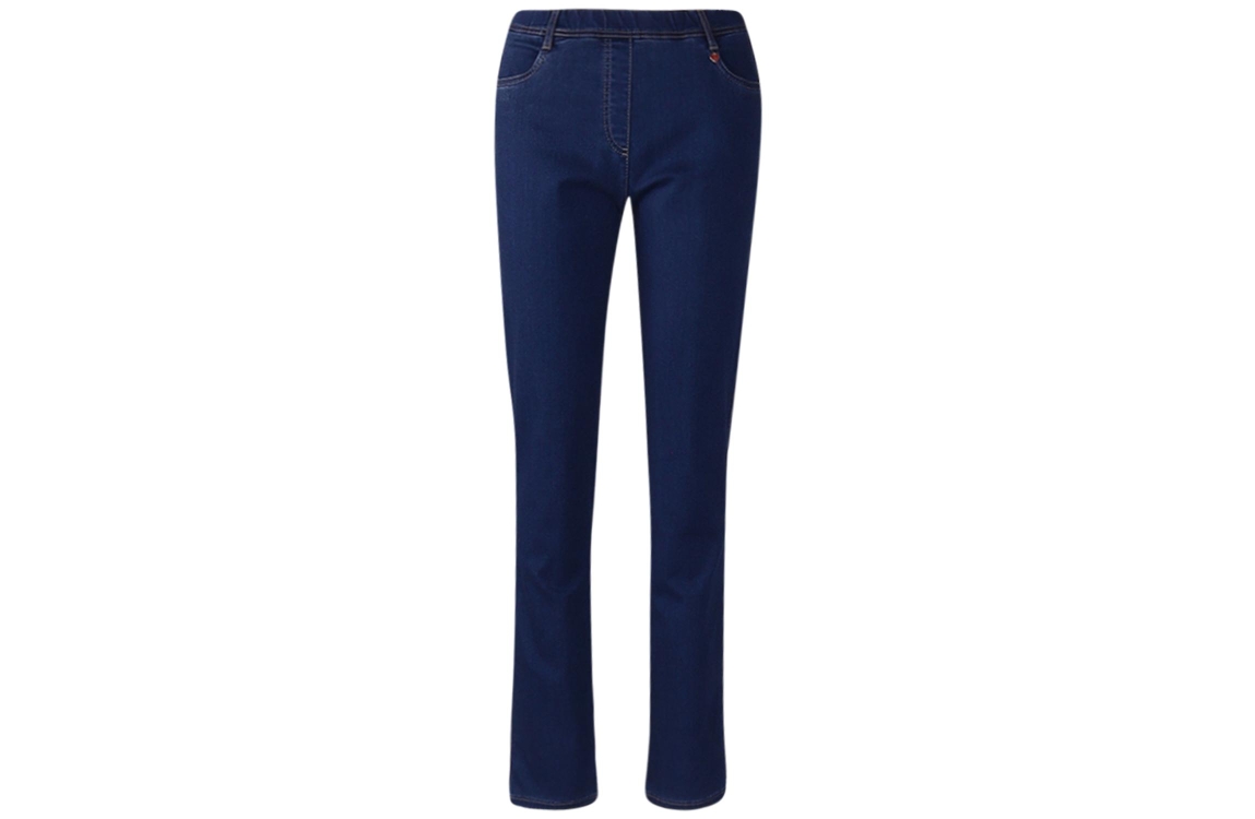 Relaxed by Toni broek Alice 11-51/2800-87. Dit high waisted model sluit door middel van een elastische tailleband. Deze denim broek van Relaxed by Toni beschikt over twee steekzakken aan de voor- en achterzijde. Het model is uitgevoerd in stretchkwaliteit.