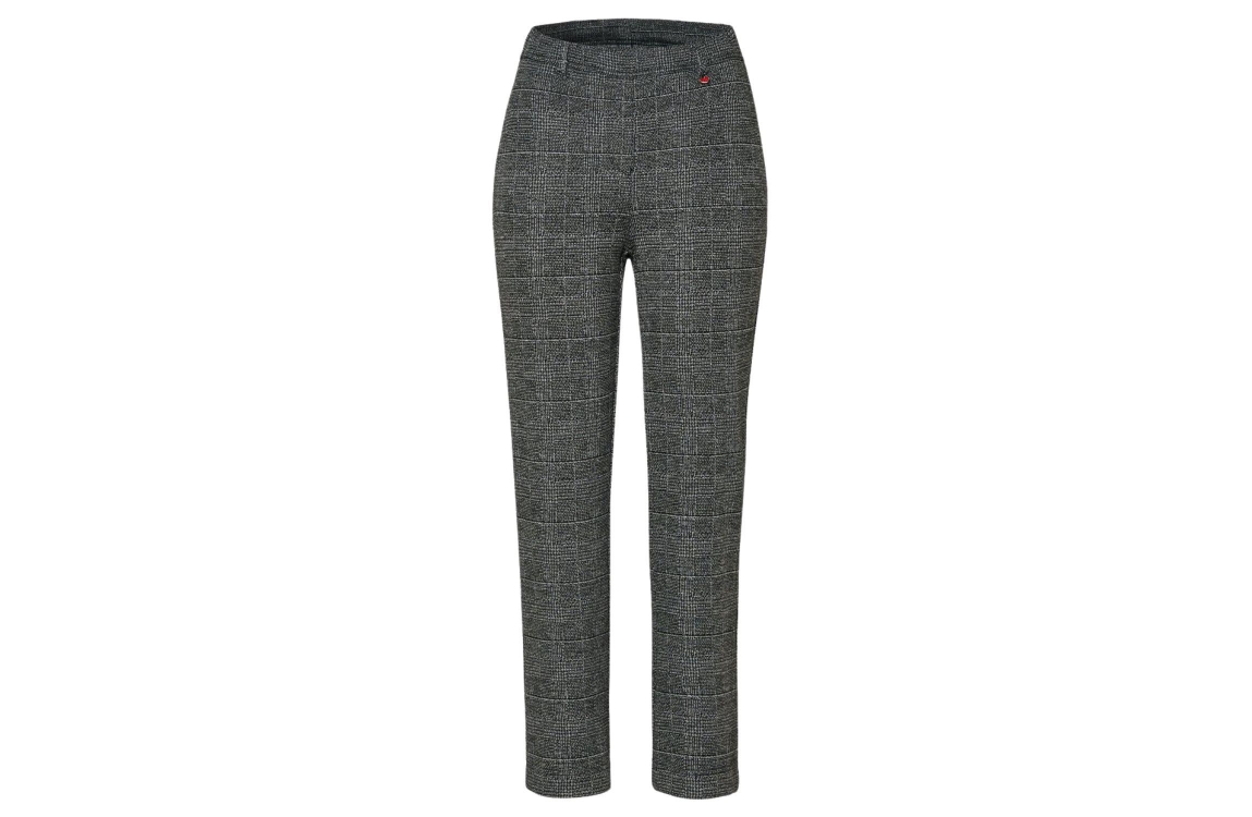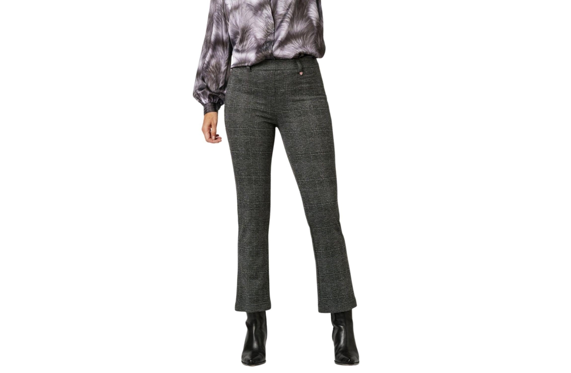 Relaxed by Toni broek 64-04/2800. Dit regular fit model sluit door middel van een elastische boord. Deze grijze broek van Relaxed by Toni is all-over bewerkt met een ruitpatroon en is voorzien van twee steekzakken aan de voor- en achterzijde.