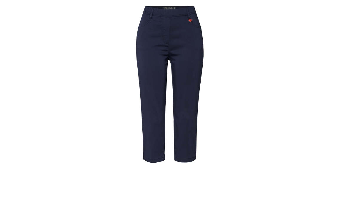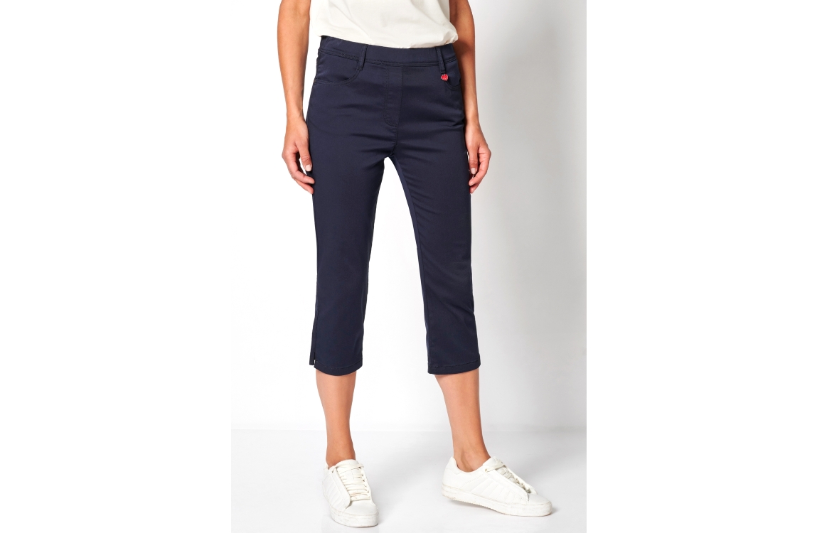 Relaxed by jeans broek Alice 21 61/2800. Dit driekwart model sluit door middel van een elastische band afgewerkt met ceintuurlussen. Deze donkerblauwe jeans van Relaxed by Toni is voorzien van twee steekzakken op het voor- en achterpand en afgewerkt met zijsplitjes.