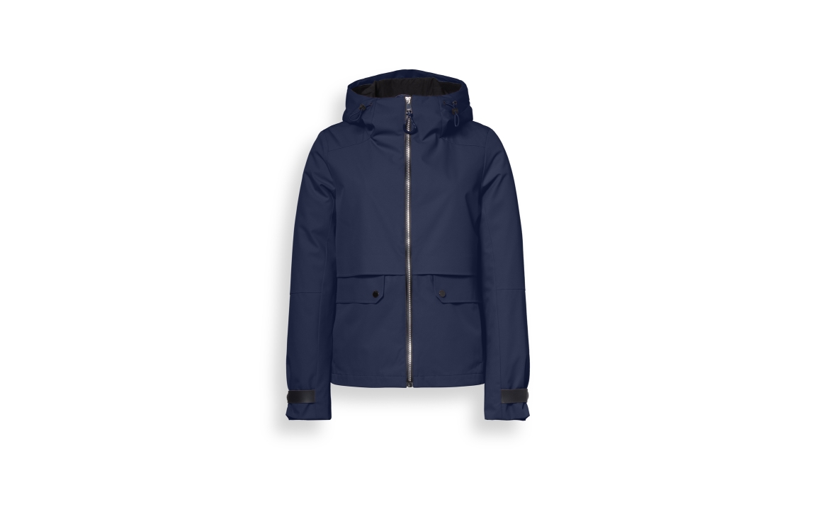 Reset jas LR00310261 5280. Dit regular fit model heeft een capuchon en lange mouwen. Deze donkerblauwe jas van Reset sluit aan de voorzijde door middel van een ritssluiting en is voorzien van twee sluitbare klepzakken. Het model is afgewerkt met een gespdetail op de mouwboorden.